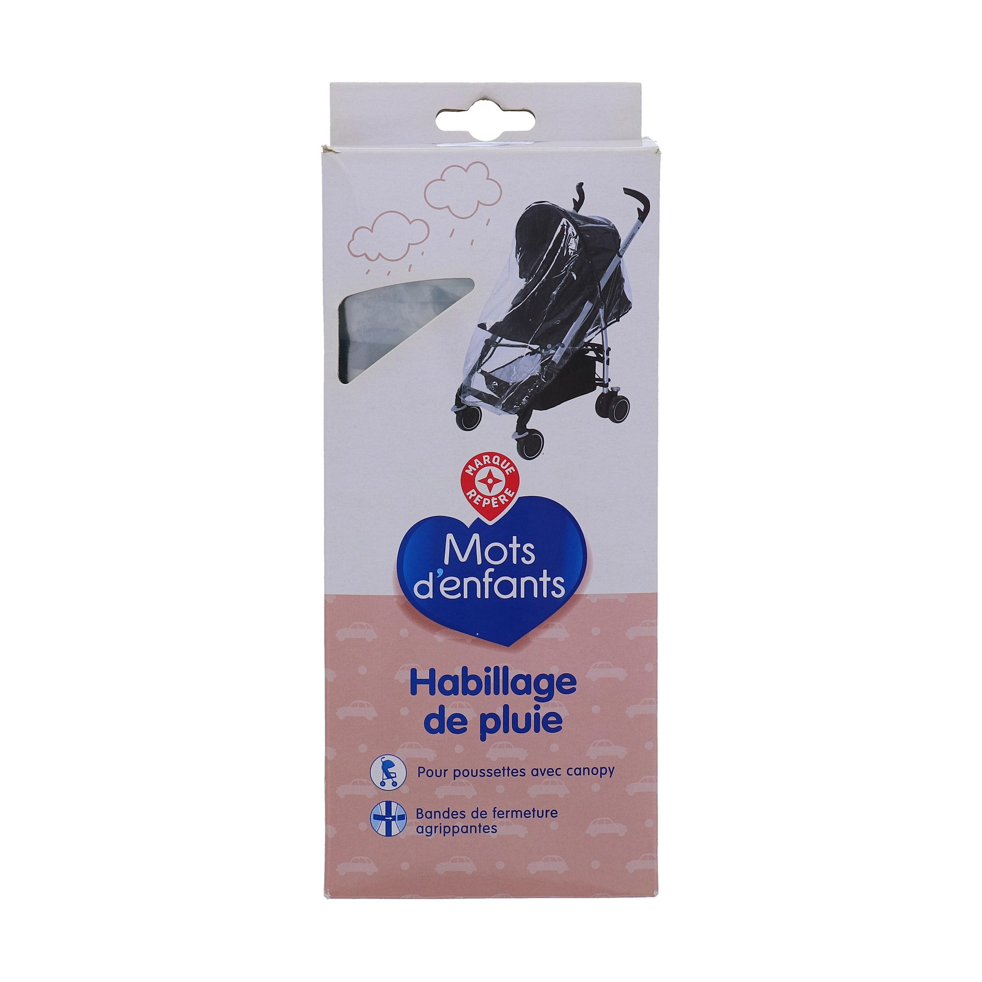 Libellé Habillage pluie - mots d'enfants - habillage pluie pour poussette avec canopy et avec bandes de fermeture aggripantes