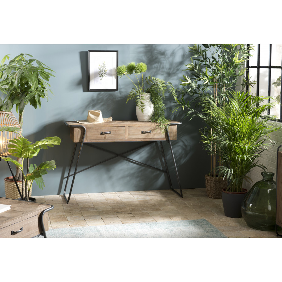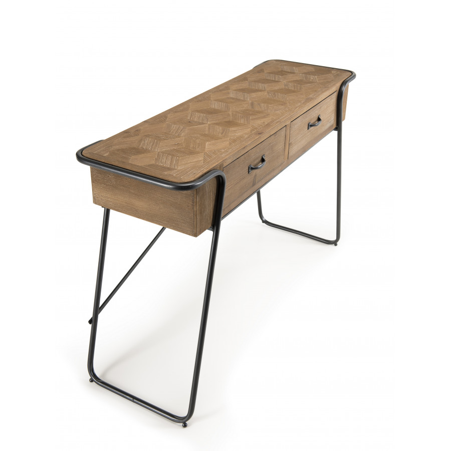 | Libellé | HABY - Console 2 tiroirs plateau naturel Sapin marqueté pieds métal |