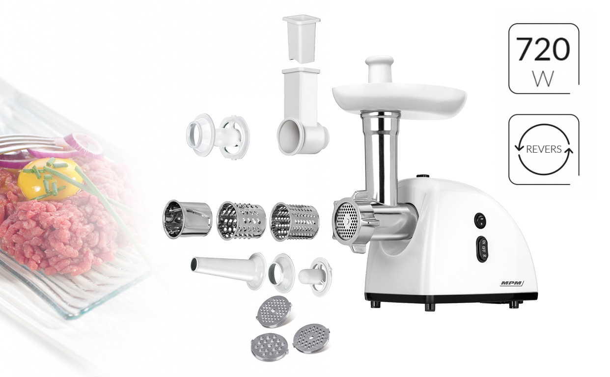 Passer le carrousel d'imagesPour ceux qui préfèrent les boulettes de viande, les lasagnes et les saucisses faites maison, MPM recommande le hachoir à viande MMM-06. Son équipement complet facilitera la préparation de viande fraîchement hachée, de pâté, de saucisses, de fromage ou de boulettes de viande.