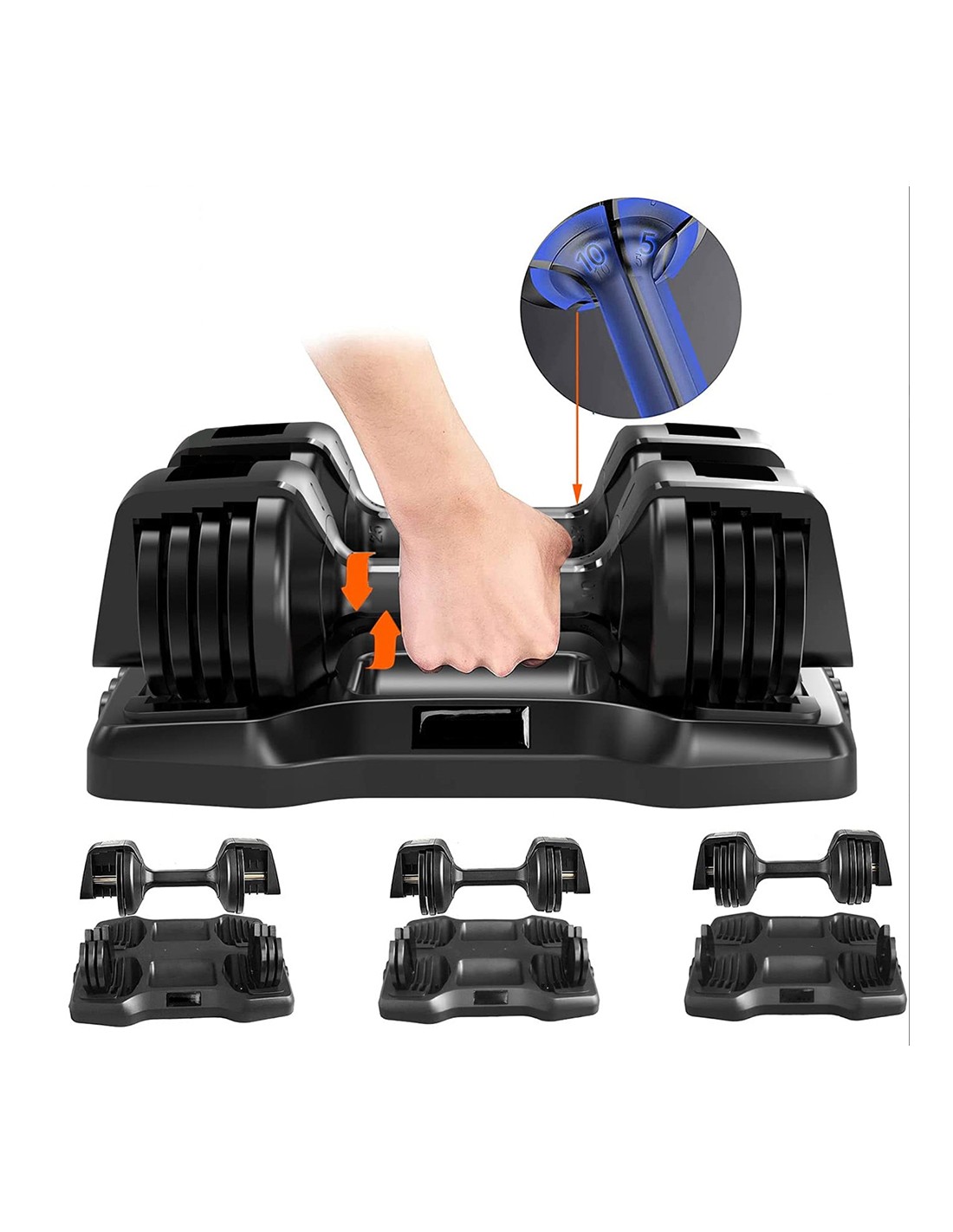 Il est très facile à utiliser. Il suffit de faire tourner l'haltère pour choisir le poids souhaité pour votre séance d'entraînement et de le soulever. Le poids est affiché sur le côté du poignet. Lorsque vous avez terminé vos séances d'entraînement, vous pouvez remettre l'haltère sur sa base pour qu'il reste bien rangé. Paire d'haltères réglable jusqu'à 12 kg par haltère. Conception compacte Système de verrouillage par rotation : tournez la poignée pour choisir le poids souhaité. Jusqu'à 14 poids dans un haltère. Comprend une base de rangement. Aide à renforcer les muscles des bras et du dos. Idéal pour faire de l'exercice à la maison. Poids réglable entre 2 et 12 kg. Matériau : acier inoxydable, ABS. Dimensions : 45,5 x 29 x 35,5 cm environ. Poids : 12 kg. Forme de cloche de qualité Tube d'acier épais Sûr et fiable Nylon haute résistance Construction de précision Verrouillage sécurisé Dimensions : 45,5 x 29 x 35,5 cm