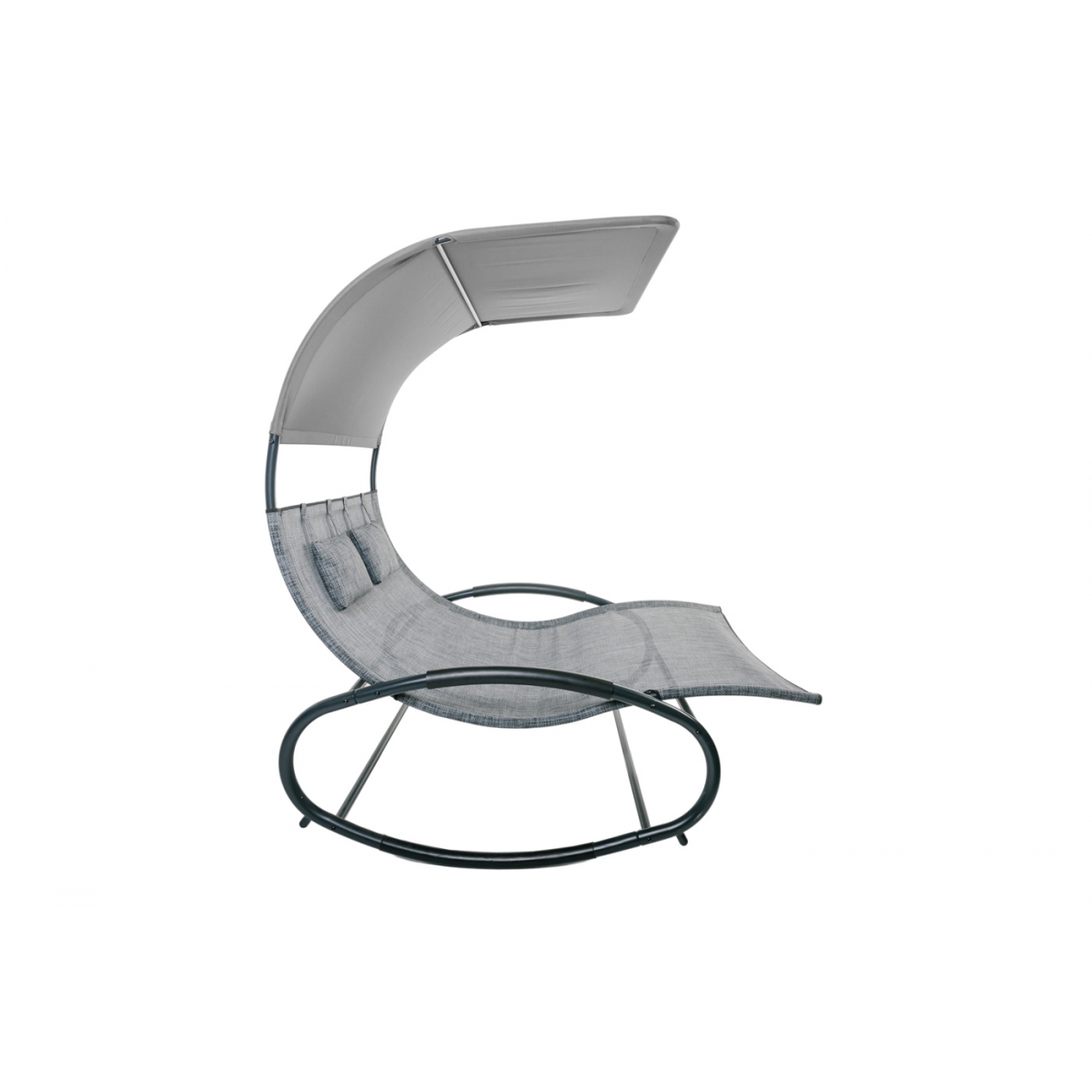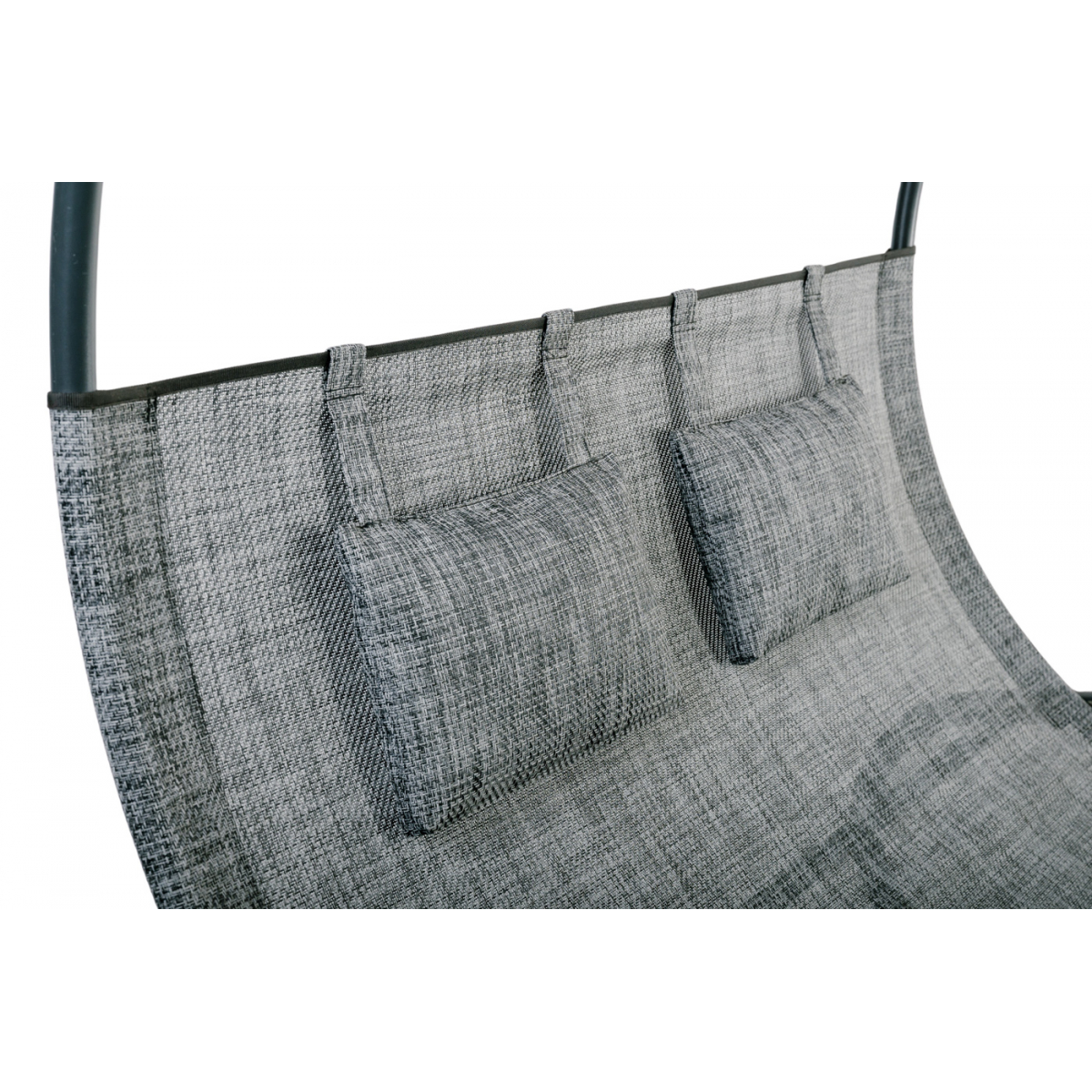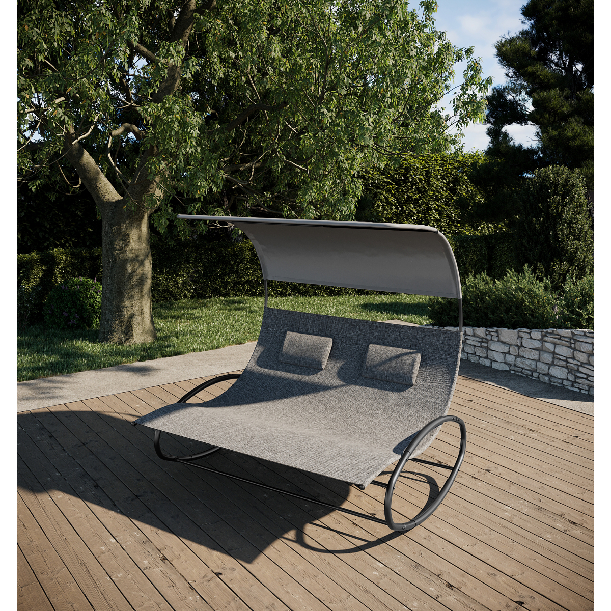 Hamac de Jardin - Transat Double A Bascule Avec Pare-Soleil Et Appui Tête Gris 2 Personnes En Texaline 2x