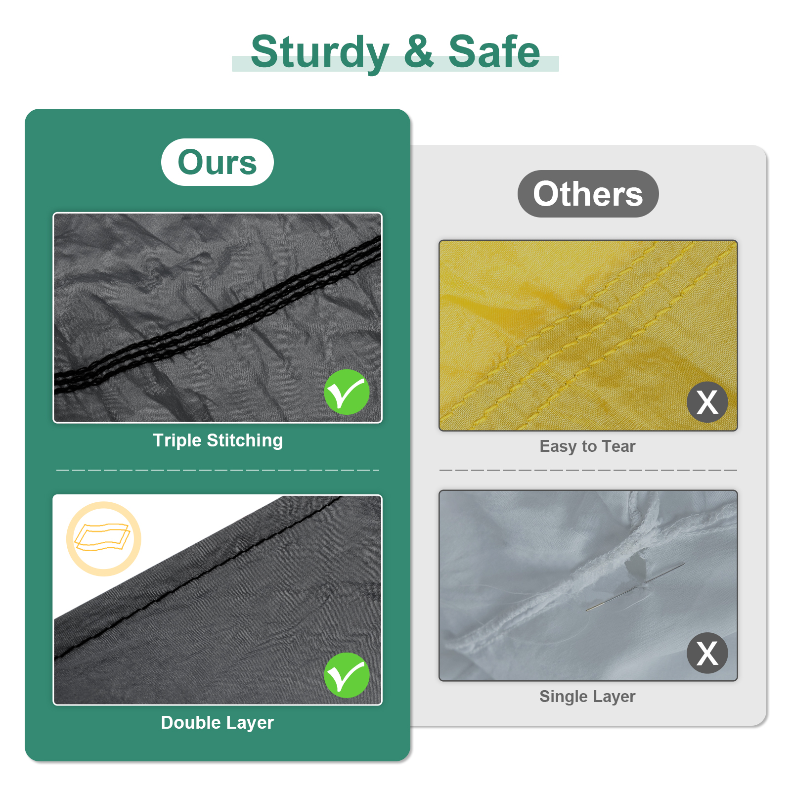 【Robuste et sûr】Fabriqué en tissu de taffetas en nylon de haute résistance, le produit ne s'étire pas au fil du temps, il est facile à laver et se sèche rapidement. Les doubles couches et les triples coutures de la balançoire de yoga réduisent les risques de déchirures au niveau du tissu et lui permettent de supporter plus de poids. Ainsi, le produit peut supporter jusqu'à 300 kg et convient aux hommes et aux femmes de différentes morphologies.