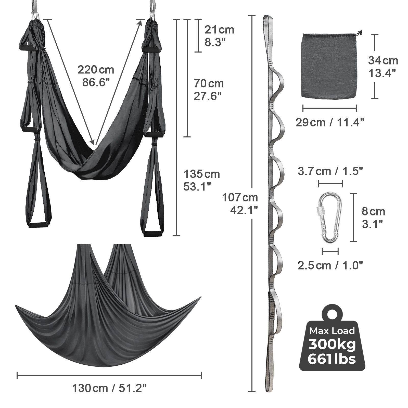 | Libellé | Hamac de yoga aérien kits, balançoire yoga inversion hamac, pour le yoga anti-gravité, nylon taffetas, capacité 300 kg (gris foncé) |