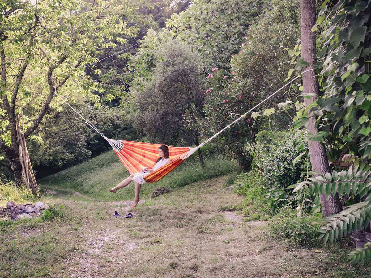 Hamac pouvant accueillir jusqu’à 2 personnes Toile de hamac grande taille au maillage très serré, pour un confort de couchage maximal (au moins 85% de coton recyclé)