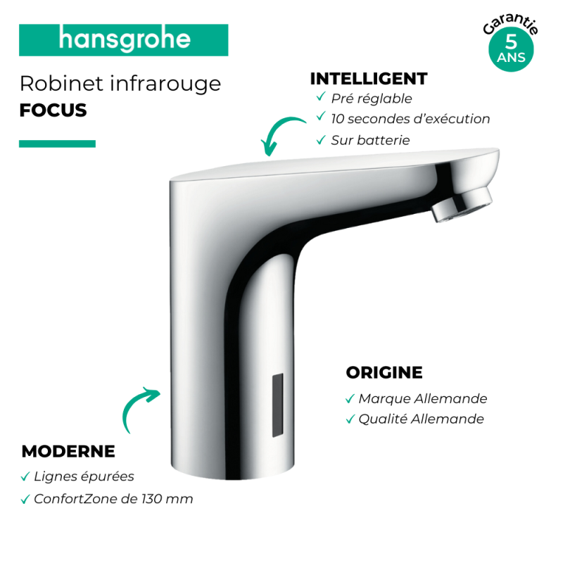 Libellé HANSGROHE Mitigeur lavabo électronique Focus sans manette de réglage de température sur batterie chromé