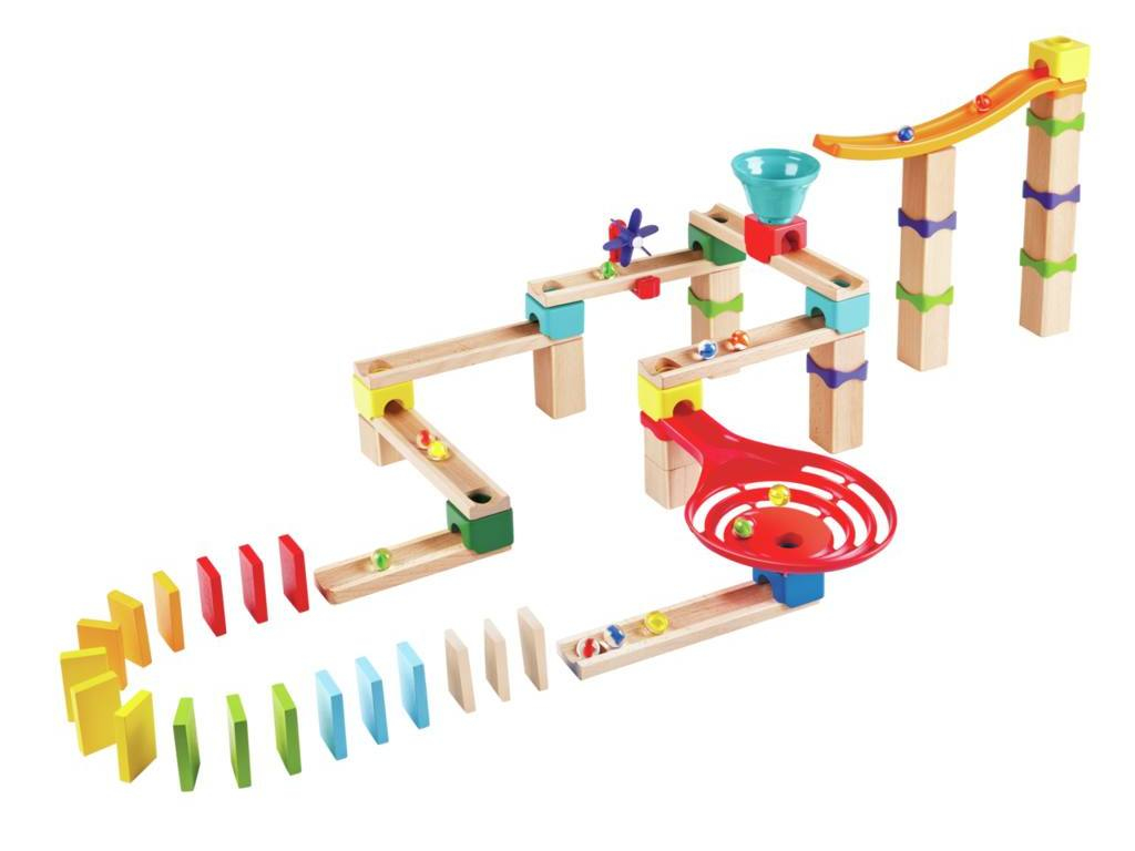 | Plus produit | Assemblage personnalisable et facile avec des blocs, pistes et dominos |