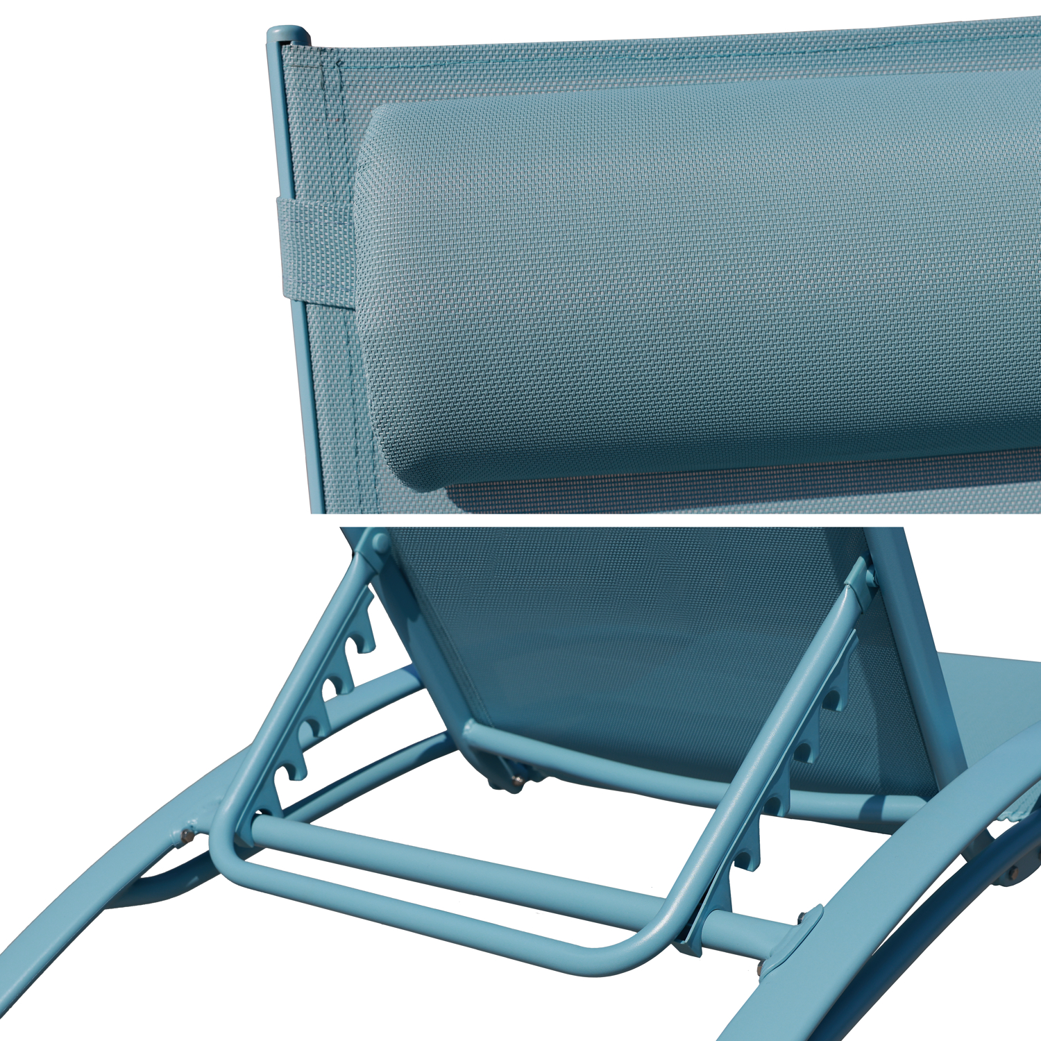 Dotés d'un revêtement bleu clair en textilène et d'une structure en aluminium assortie, ces transats allient style et confort. Leur assise souple et ergonomique s'adapte parfaitement à votre corps, offrant un soutien optimal pour une détente totale. Les coussins repose-tête, avec leur housse en textilène et leur rembourrage en mousse, ajoutent une touche de confort. Grâce à son dossier inclinable sur 5 positions, vous pouvez facilement ajuster l'inclinaison de votre bain de soleil selon vos préférences. Que vous souhaitiez lire un livre, bronzer ou simplement vous reposer sur votre terrasse, au bord de la piscine ou dans votre jardin, ces transats s'adaptent à toutes vos envies.