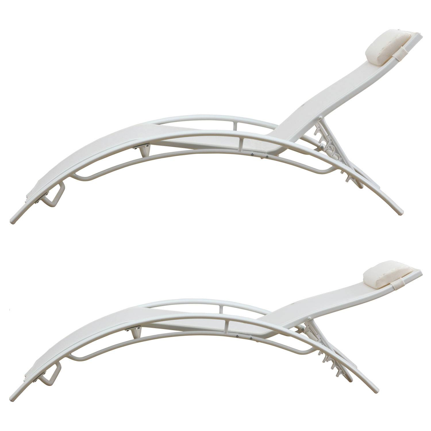 Le bain de soleil en aluminium et textilène GALAPAGOS donne une touche très actuelle à votre extérieur grâce à sa couleur blanche très chic et son design arrondi.L'assise en textilène de ces transats offre un confort surprenant : cette toile tissée avec des fibres en PVC épouse parfaitement les formes du corps, les alvéoles qui la composent permettent à la peau de respirer quand il fait chaud. Vous adapterez le dossier selon vos envies - lecture, sieste, relaxation - car il est inclinable sur plusieurs niveaux et vous serez très bien installé grâce aux appui-tête 100% détente.Relaxez-vous en duo et faites de ce lot de bains de soleil votre mobilier farniente de prédilection pour tout l'été.