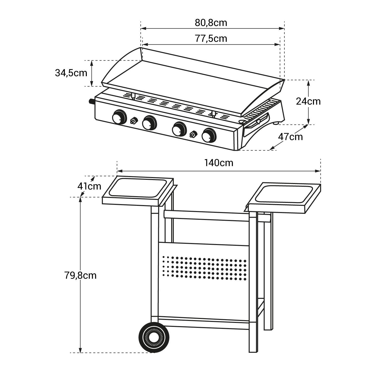 La plancha au gaz offre simplicité d’utilisation et d’entretien. Les 4 brûleurs et la plaque en acier émaillé permettent de répartir la chaleur de façon homogène pour une saisie parfaite et rapide de vos aliments. De plus, elle assure aussi une cuisine saine et savoureuse. Cuisinez aussi bien de la viande, du poisson, des condiments et des légumes ! Tout le monde pourra exprimer le chef qui sommeil en eux. Facile à déplacer avec son chariot à roulettes, vos convives peuvent aussi participer sans danger. Bonne humeur et convivialité assurée !