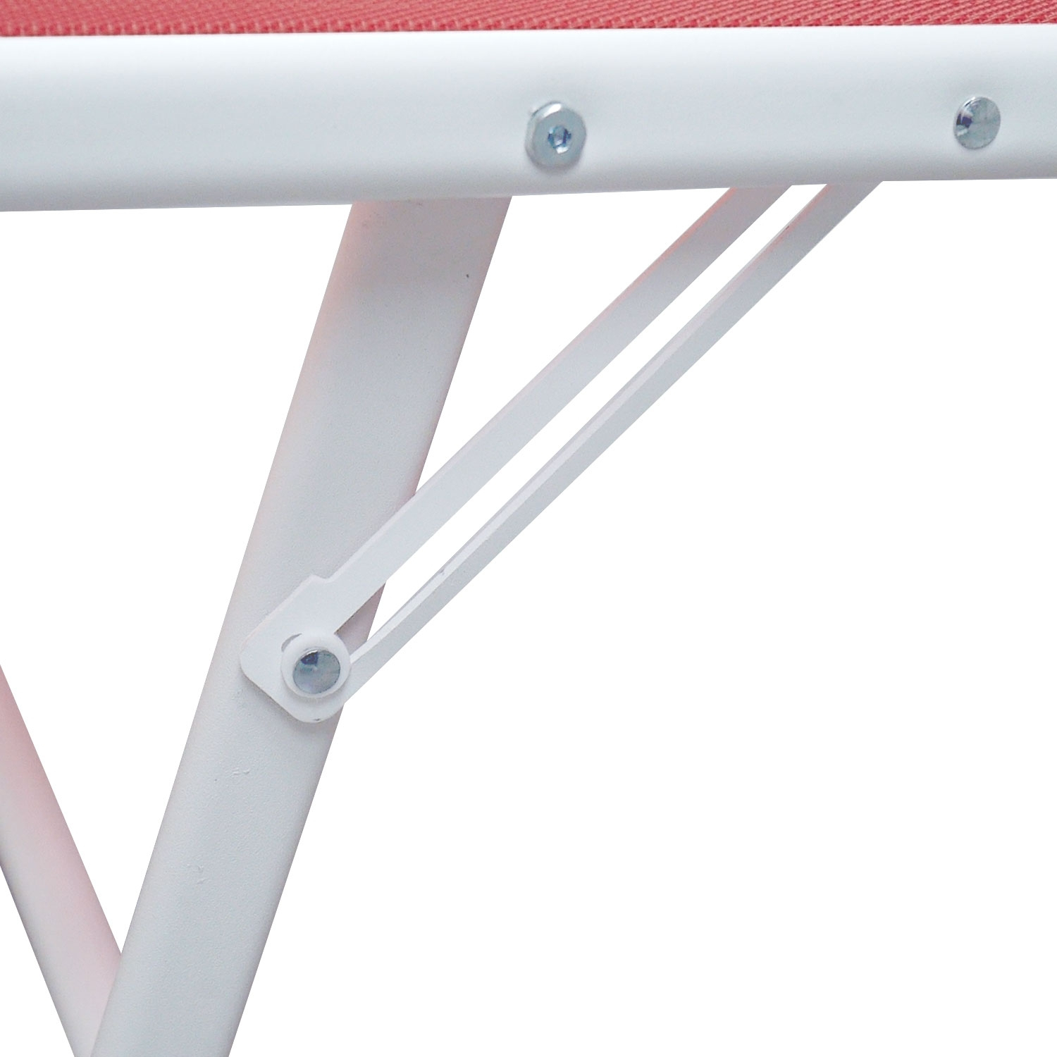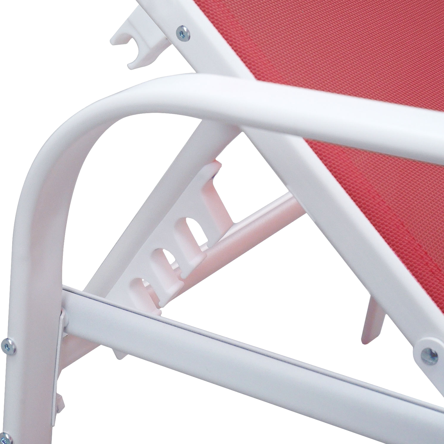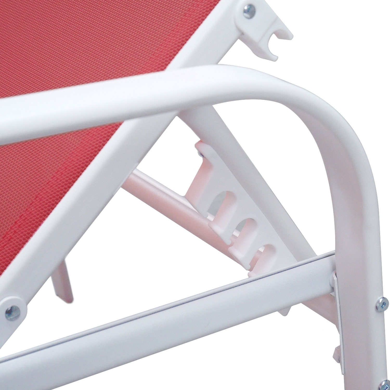D'un design contemporain, nos bains de soleil SARDINIA disponibles en lot de 2 apportent style et confort à tout jardin ou patio. Ils sont composés d'un cadre en acier blanc pour une durabilité optimale et d'une assise en textilène rose. Ils vous offrent une position de détente idéale lorsque vous souhaitez bronzer au soleil ou faire une sieste reposante à l'ombre un après-midi d'été. Vous pouvez ajuster le dossier sur différents niveaux d'inclinaison de façon à vous allonger ou à vous asseoir confortablement. Nos transats se plient pour un rangement facile pendant la saison froide. Robustes et élégantes, nos deux chaises longues comportent de belles finitions pour donner du style à la déco extérieure tout en étant résistantes aux conditions climatiques, aux U.V. et aux intempéries.