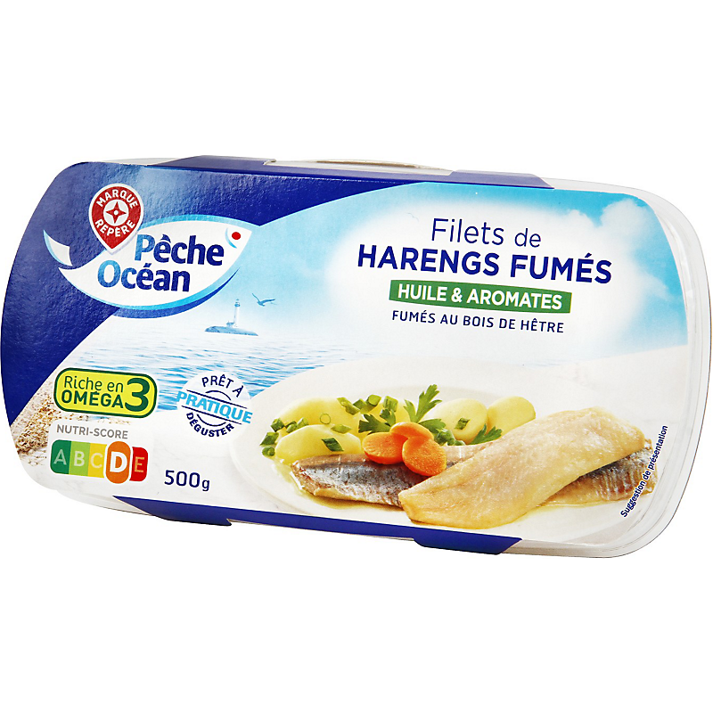 FILETS DE HARENGS FUMES AU BOIS DE HETRE, A L'HUILE DE COLZA ET AUX AROMATES PECHE OCEAN