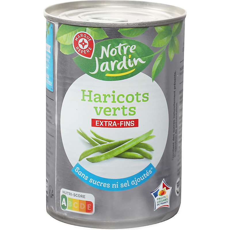 Haricots verts sans sel ajouté, cultivés en france , mis en boite en france , coupés , excellent produit