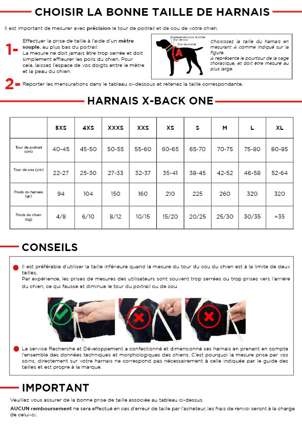 Le harnais X-Back ONE de la gamme ONE est conçu pour répondre aux exigences de confort et de fiabilité pour les chiens lors d’activités sportives telles que la course, le jogging, le vélo, la trottinette ou skijoering accompagné de son chien en traction. La gamme ONE est conforme aux exigences de nombreuses fédérations de sports canins attelés et peut être utilisée en compétition.