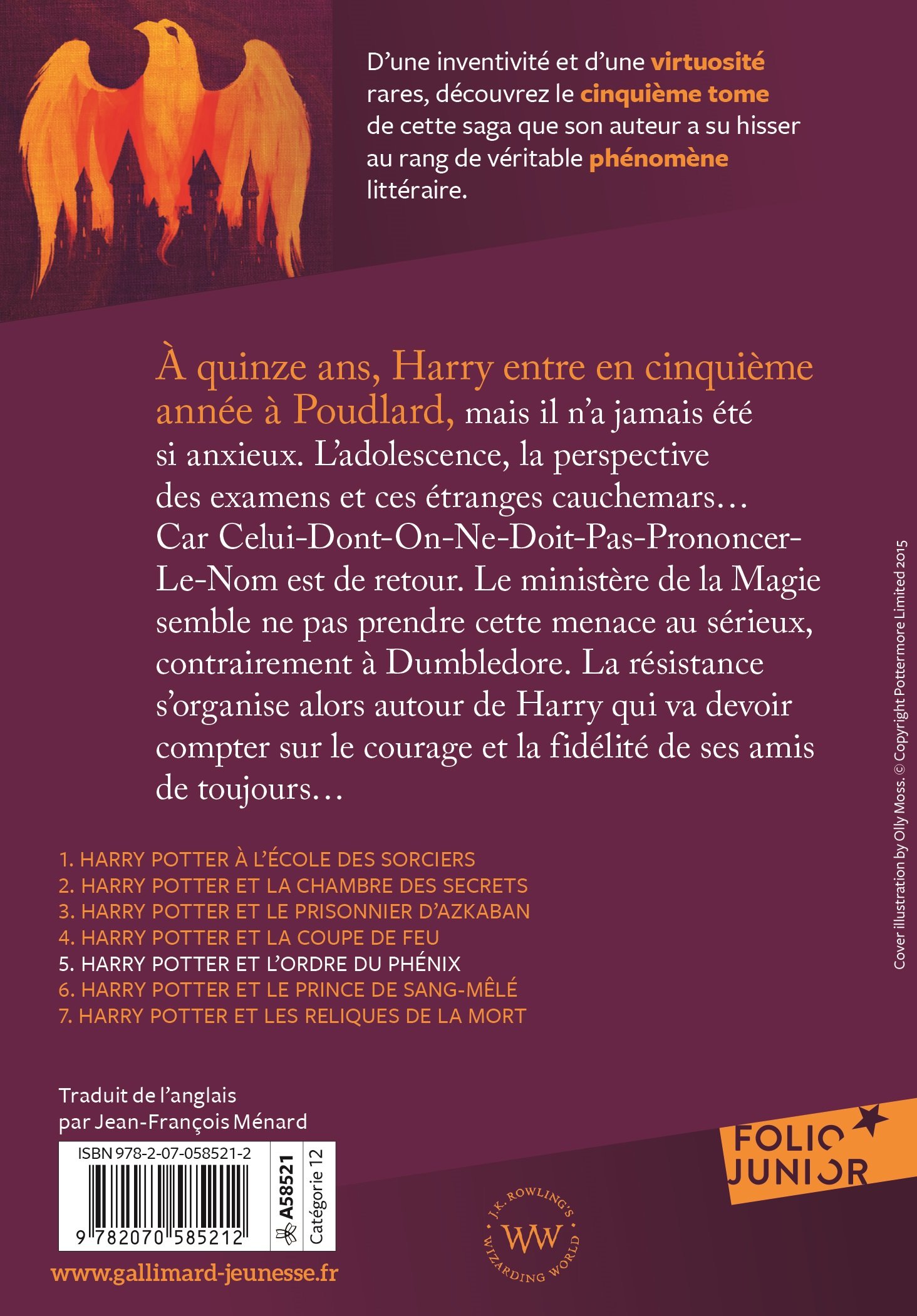 À quinze ans, Harry entre en cinquième année à Poudlard, mais il n'a jamais été si anxieux. L'adolescence, la perspective des examens et ces étranges cauchemars... Car Celui-Dont-On-Ne-Doit-Pas-Prononcer-Le-Nom est de retour. Le ministère de la Magie semble ne pas prendre cette menace au sérieux, contrairement à Dumbledore. La résistance s'organise alors autour de Harry qui va devoir compter sur le courage et la fidélité de ses amis de toujours...