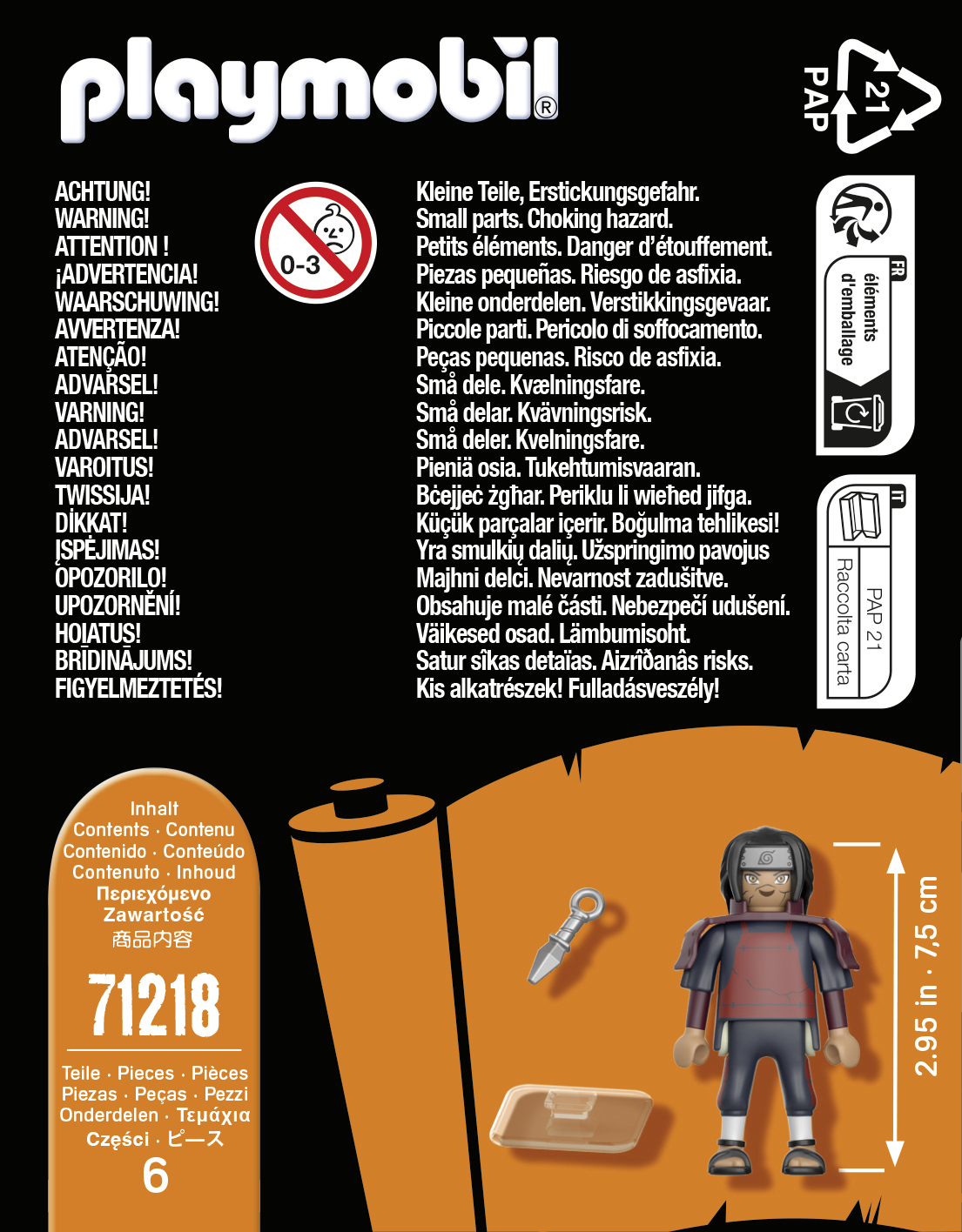 L'univers PLAYMOBIL Naruto continue de s'étendre ! Tous les fans d'anime peuvent se réjouir des nouveaux personnages du monde passionnant de NARUTO. Grâce aux nombreux détails des figurines, les personnages conçus avec précision invitent à reconstituer des scènes légendaires et à inventer de nouvelles histoires. Ce set comprend le personnage de NARUTO SHIPPUDEN, Hashirama avec un Kunai. Les tongs et les anneaux de bras sont amovibles. Le personnage est solidement fixé sur le socle pour une meilleure stabilité.