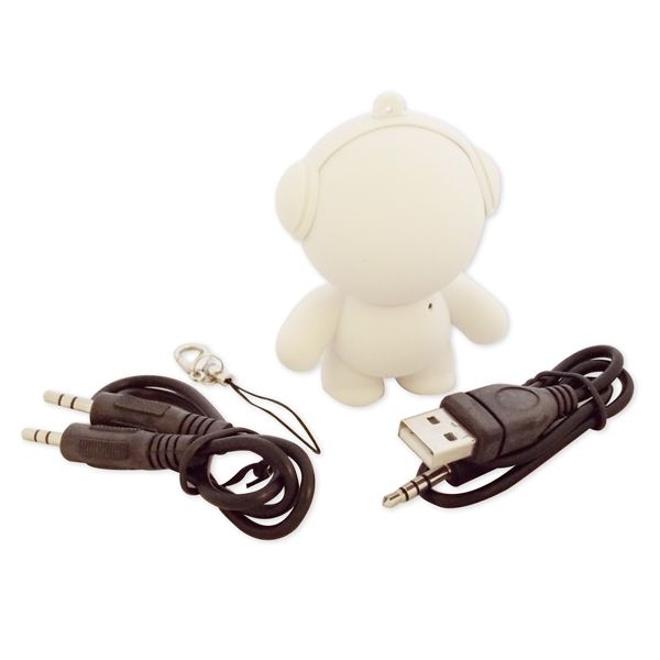 Ce bonhomme haut-parleur sera le gadget indispensable pour écouter vos musiques que ce soit sur votre ordinateur, avec votre téléphone ou encore votre MP3 à condition qu'il comprenne un port jack.* Dimensions : 70 x 55 x 45 mm * Matière : plastique * Connexion : prise jack * Câble : 1 câble de double sortie jack, 1 câble jack/USB Fonctions : haut-parleur Contenu : 1 bonhomme haut-parleur