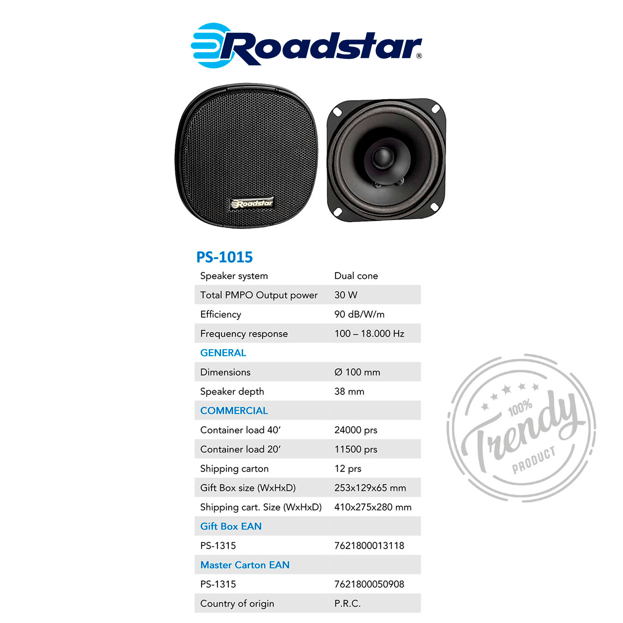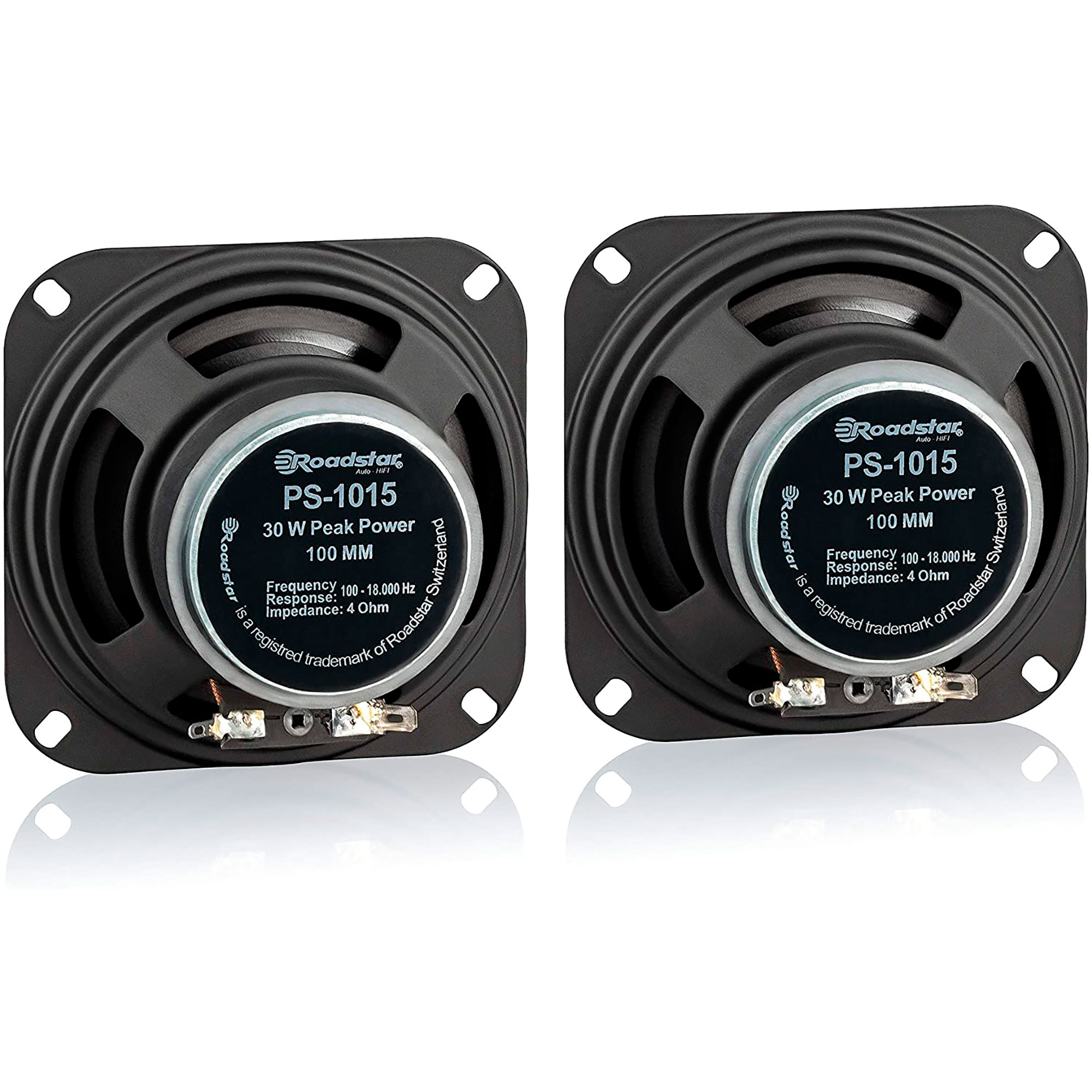 Libellé Haut-Parleurs de Voiture 10cm Coaxial, Audio à 2 Voies 2 Haut-Parleurs, PMPO 30W 30 Noir RoadstarPS1015