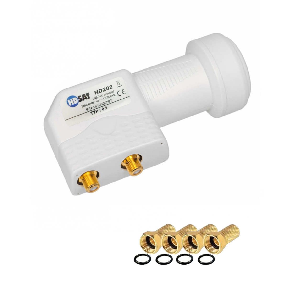 | Libellé | HDSAT HD202 LNB Twin Full HD 4K Tête Parabole 2 sorties 0,1dB + 4 Fiches F GOLD |