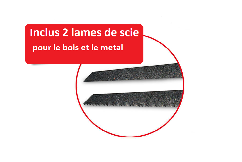 ADAPTATION PRATIQUE : Grâce à ses lames changeables ainsi contenu dans la livraison la scie qui permet de couper le bois et le métal. La lame de scie peut être changée sans outils et est très rapide.