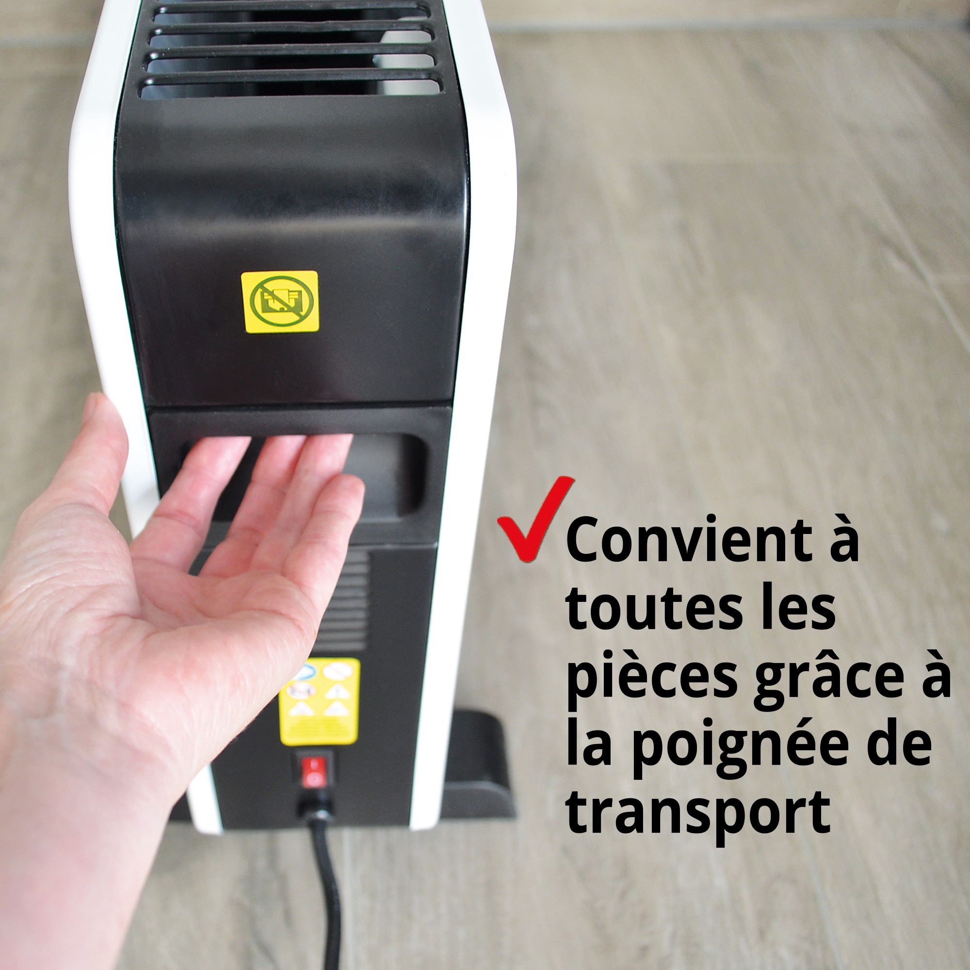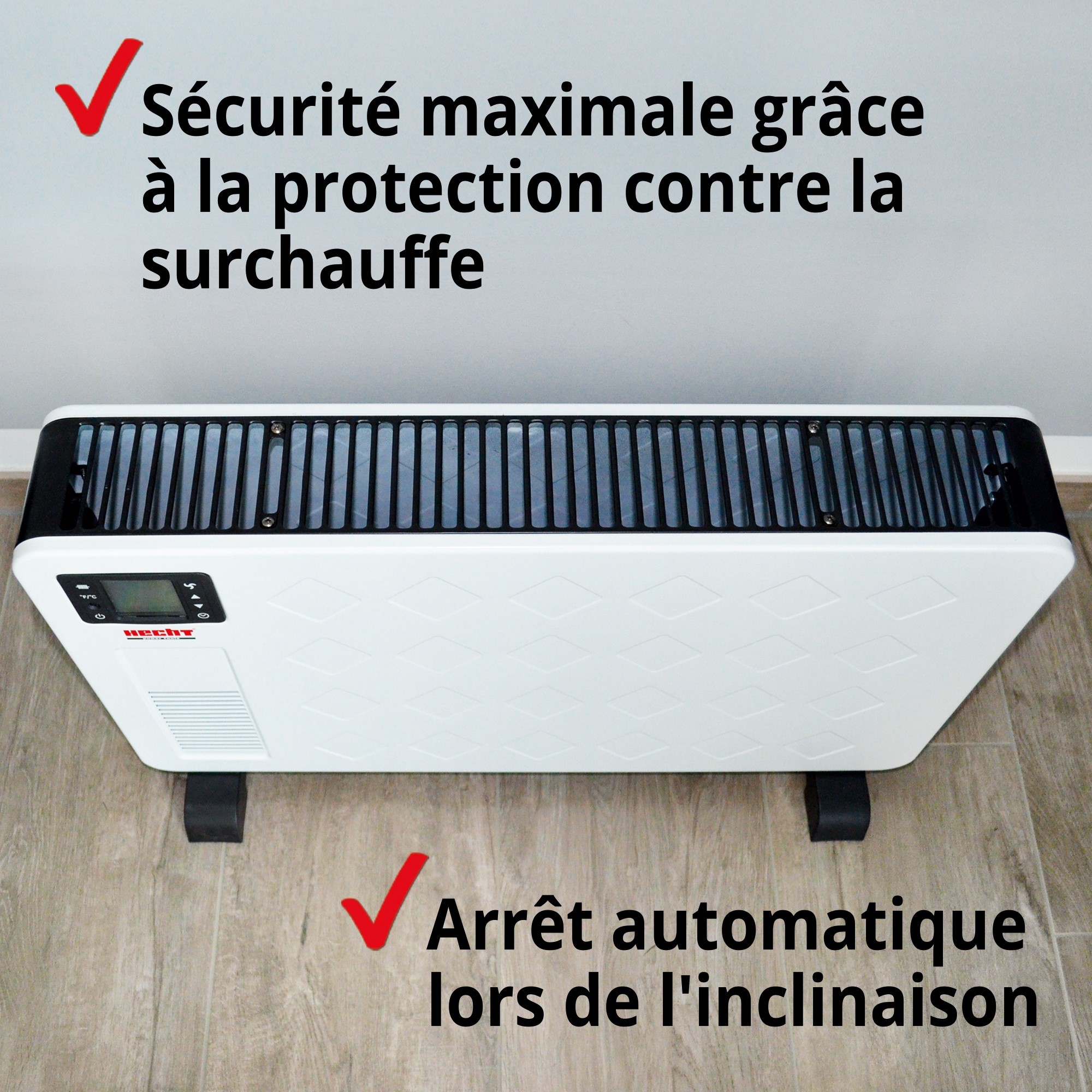 - EXTRÊMEMENT HAUTE SÉCURITÉ – Ce radiateur a un pied solide. De plusé une protection contre la surchauffe a été installée dans le radiateur électrique. Avec le chauffage électrique Hechté vous êtes du bon côté.