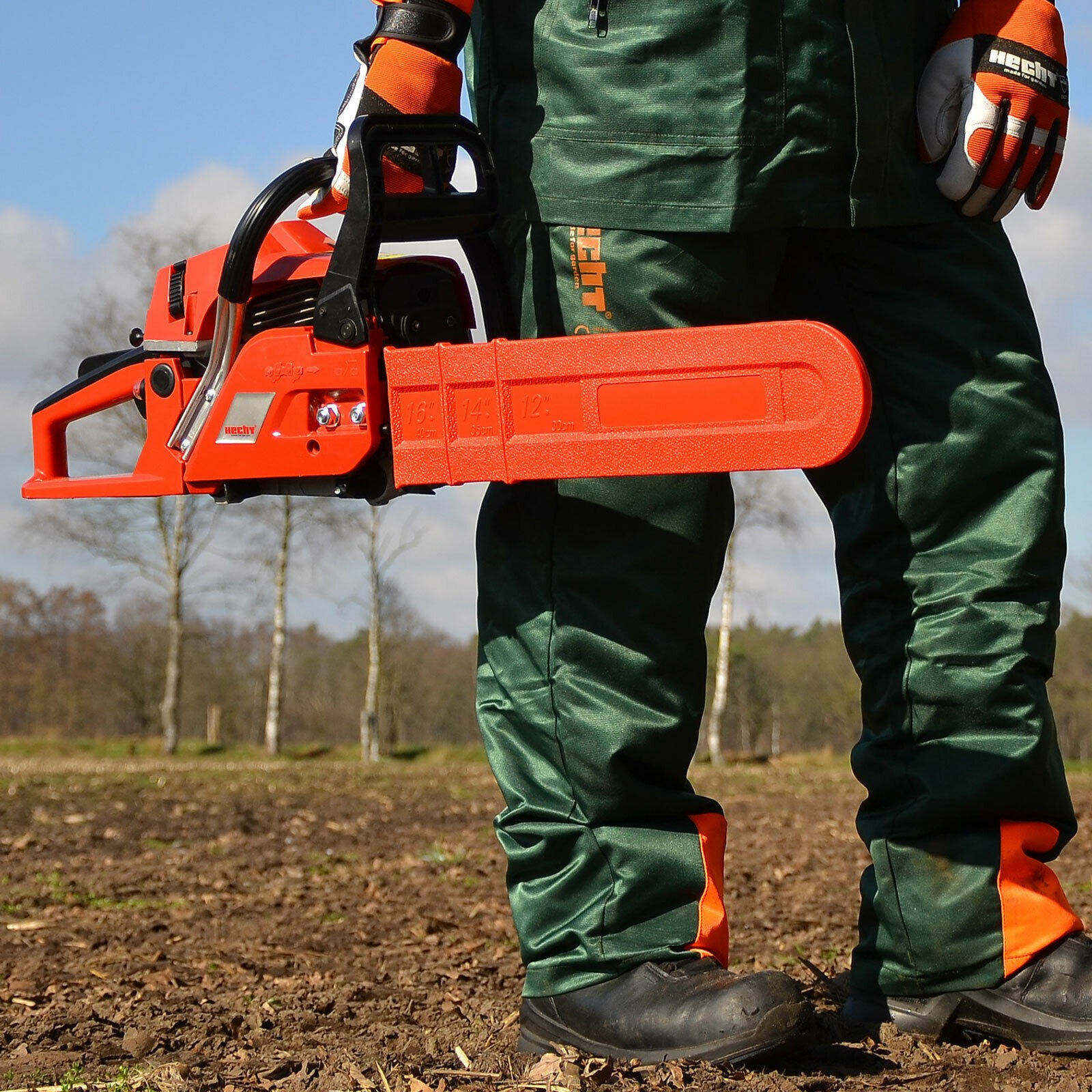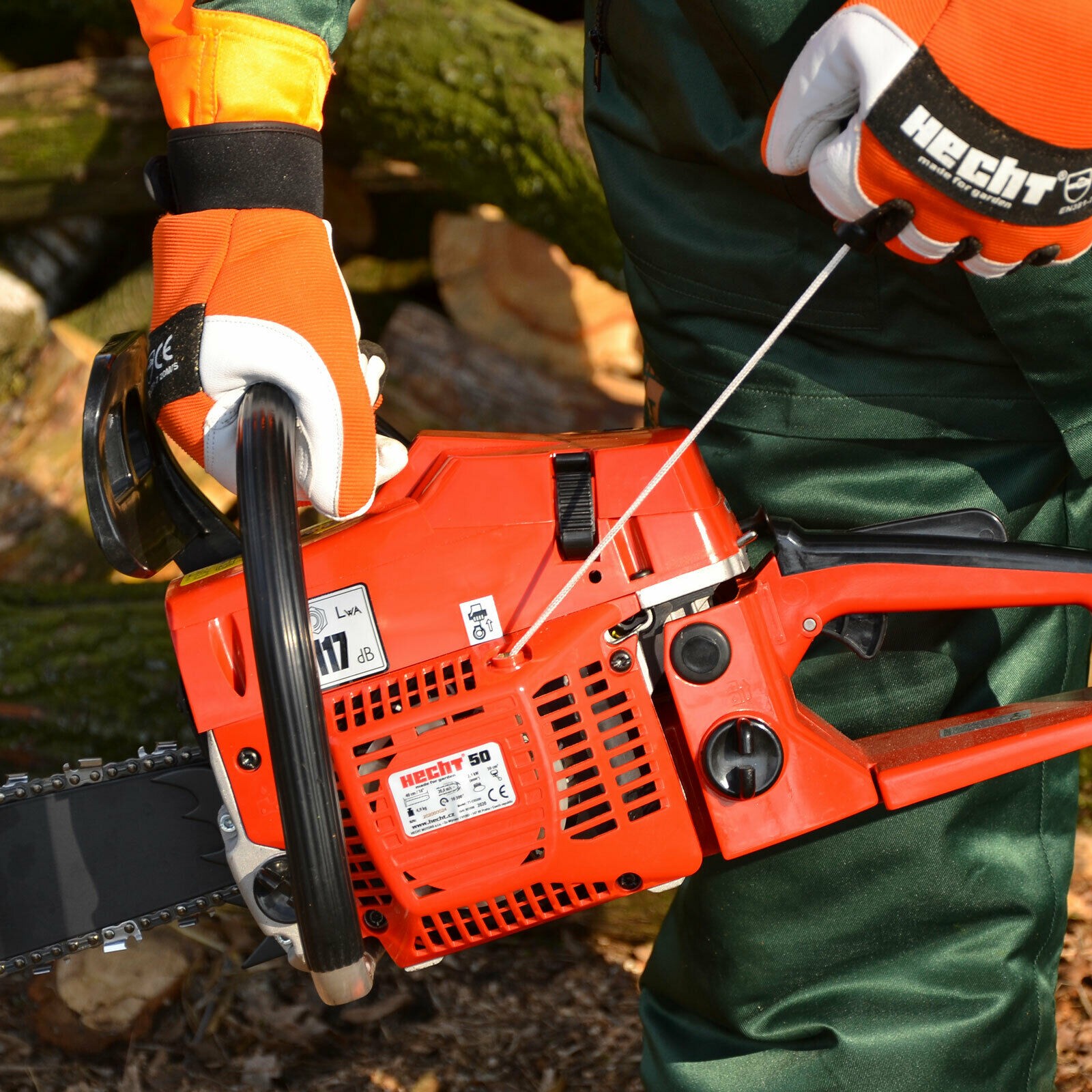 Les poignées ergonomiques sont antidérapantes et parfaites pour une manipulation facile et un travail sans fatigue. La tronçonneuse Hecht 50 peut être démarrée rapidement et facilement et impressionne par sa manipulation simple et son excellente convivialité. La scie à essence est équipée d'un protège-main pour assurer une sécurité maximale.