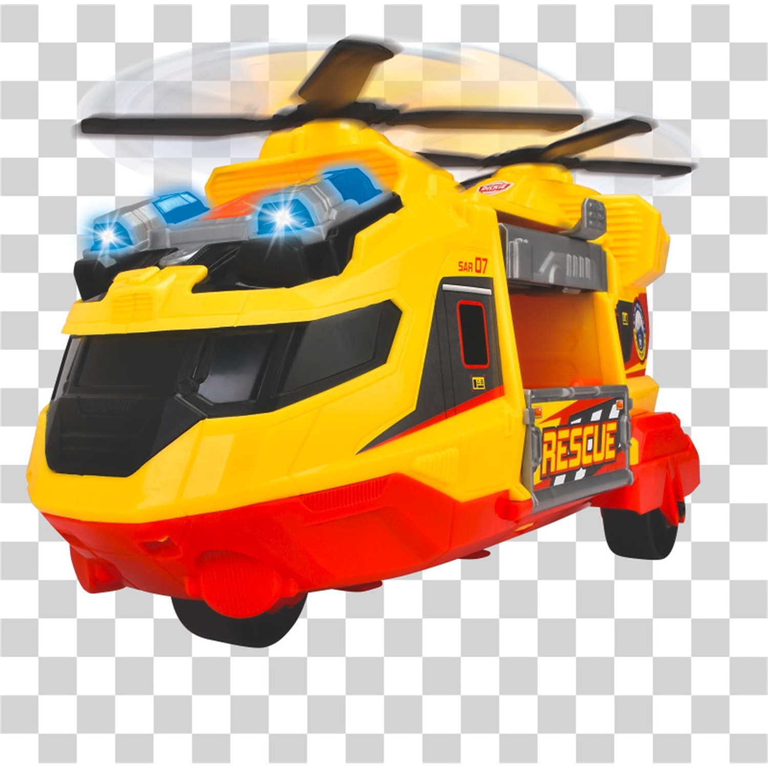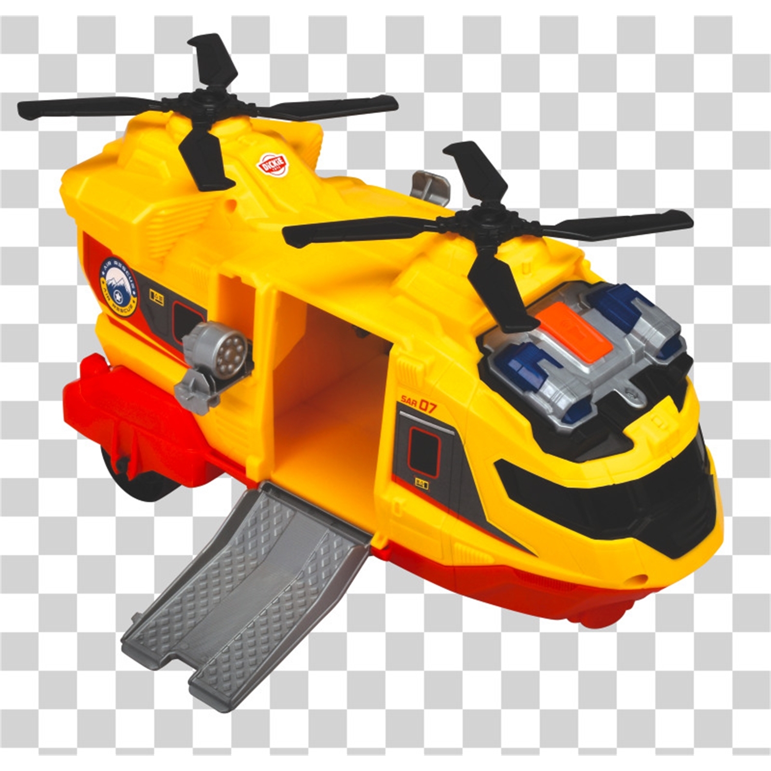 Dickie 203306023 Hélicoptère - - Un sauvetage en montagne, dans des endroits difficiles d'accès ou même dans le désert : dès qu'il reçoit un appel de détresse, l'hélicoptère de sauvetage s'envole vers les coins les plus reculés de la planète ! - - Pour rendre l'expérience de jeu encore plus authentique, il est possible d'ajouter des lumières et des sons en appuyant sur un bouton. - - Détails : - - - À partir de : 3 ans