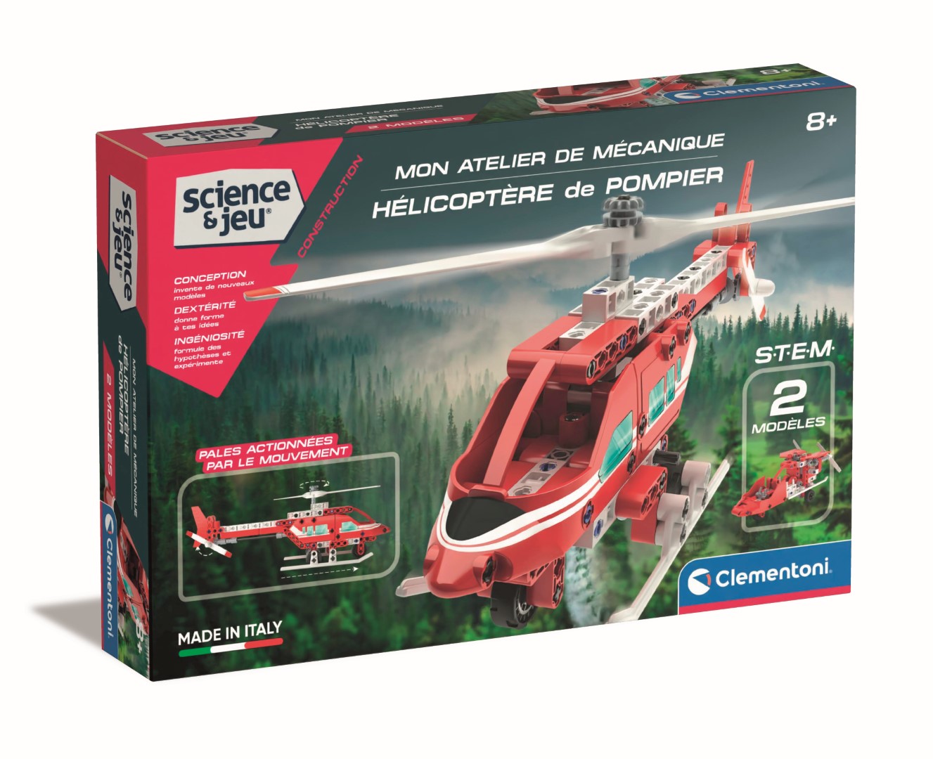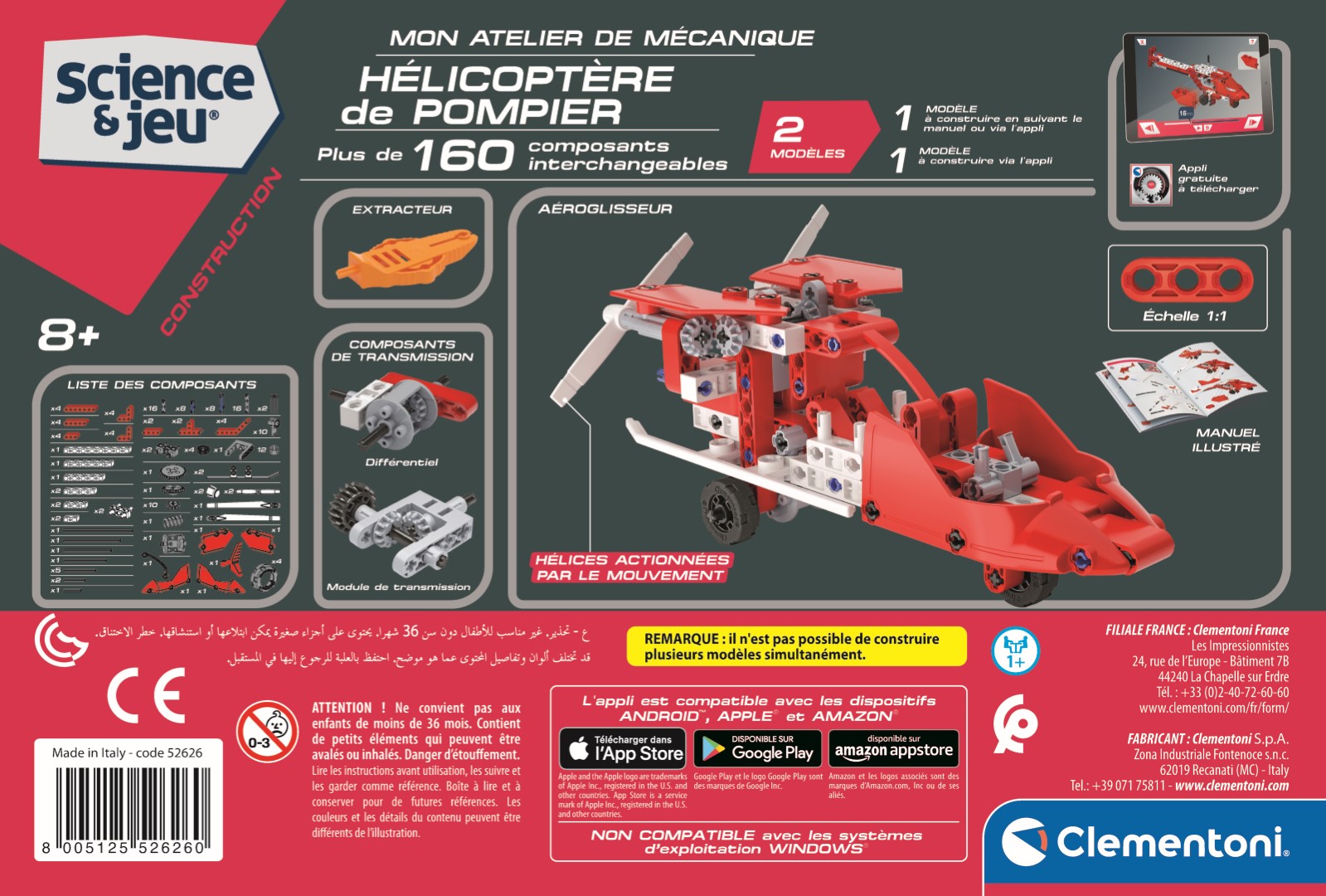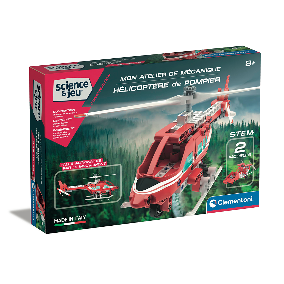 • Les pompiers sont prêts à partir en mission de sauvetage sur un hélicoptère ou un aéroglisseur à assembler ! • Plus de 160 composants pour construire un incroyable hélicoptère de sauvetage et un aéroglisseur, avec des mécanismes à actionner. • Les roues de l'hélicoptère sont reliées aux rotors : lorsque l'hélicoptère se déplace, les hélices tournent, rendant le modèle encore plus réaliste ! • Les hélices de l'aéroglisseur tournent grâce aux éléments de transmission à assembler. • L'application avec des instructions en 3D guidera l'enfant étape par étape dans la construction des modèles.