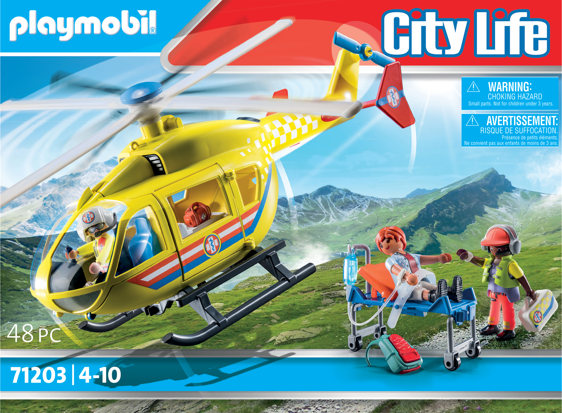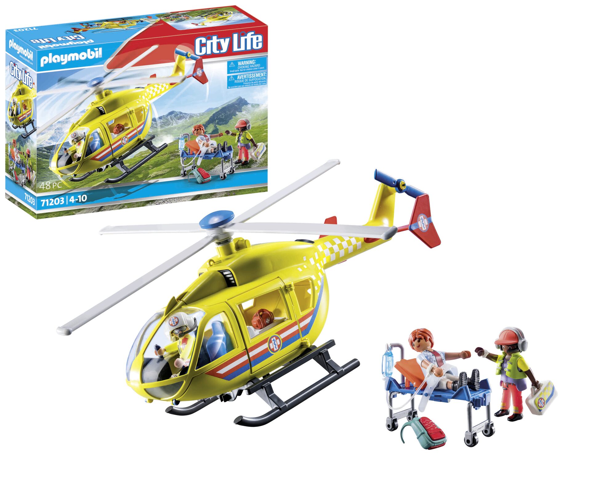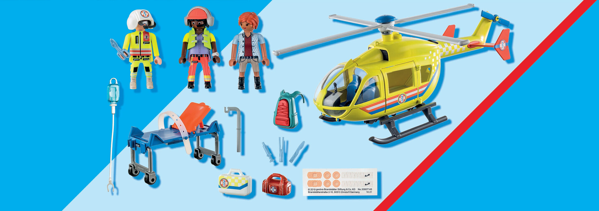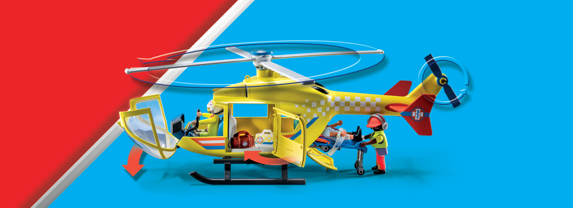 | Plus produit | Le cockpit de l\'hélicoptère peut s\'ouvrir pour y installer le pilote\nLes portes latérales s\'ouvrent et se ferme pour charger les blessés\nUn espace intérieur est disponible pour y glisser le brancard\nAvec 3 personnages |