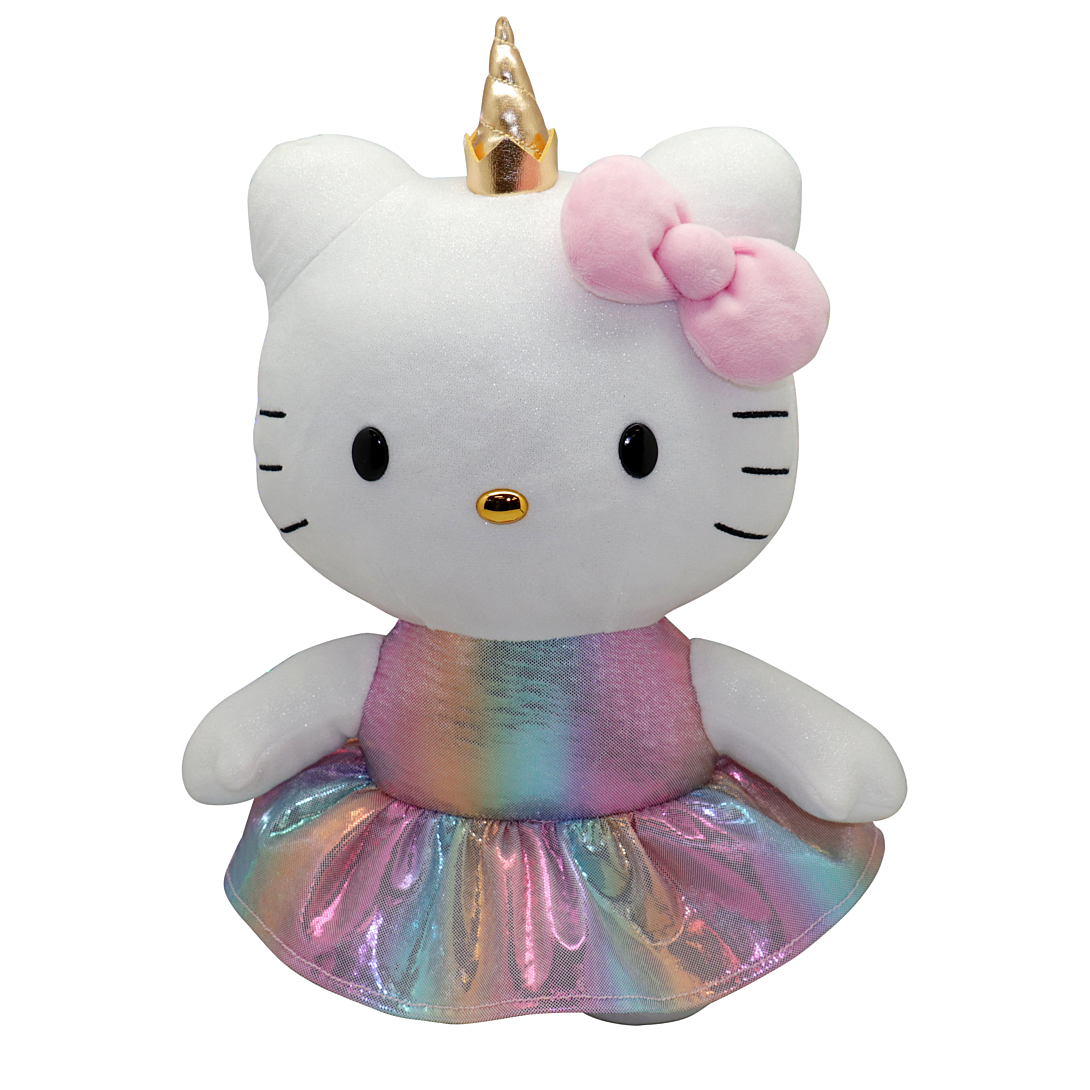 Peluche Hello Kitty en édition limitée avec un certificat d’authenticité. Peluche toute douce avec une robe étincelante et une corne de licorne. Taille 30 cm