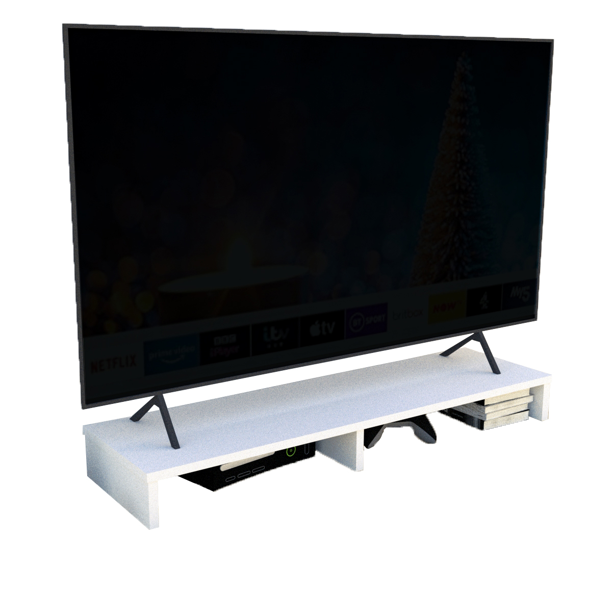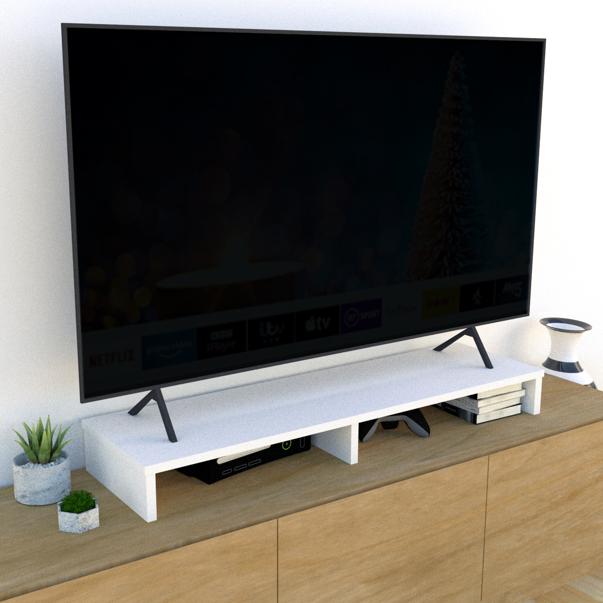 Henor Support TV en Bois élévateur d'écran TV 115 x 35 x 12 cm. Meuble TV supporte 90 kg. Blanc Mat.