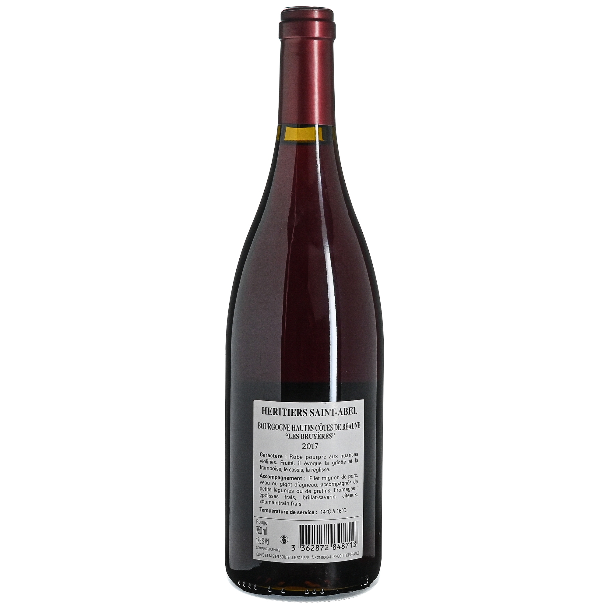 | Libellé | Héritiers Saint-Abel - Les Bruyères, 2017 - Bourgogne Hautes-Côtes de Beaune AOP - Rouge - 75 cl |