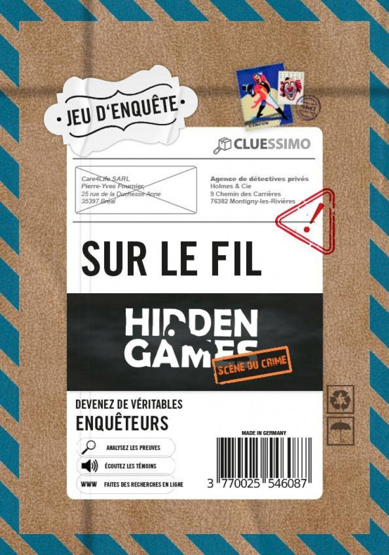 Le but du jeu "Hidden Games - Sur le Fil" est de résoudre l'enquête en équipe avec succès. Vous devez étudier le dossier, trouver des preuves, vérifier les alibis et parfois changer de perspective.