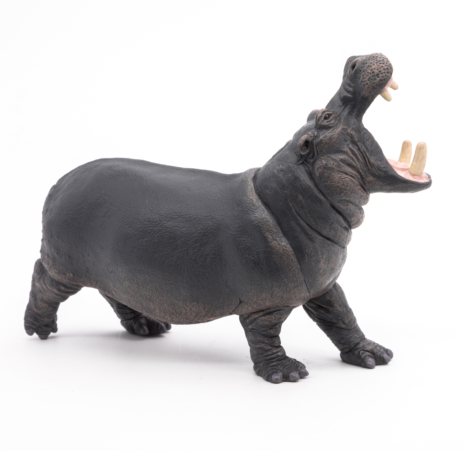 Malgré son apparence calme, il est préférable de ne pas se frotter à un hippopotame. Même les crocodiles se méfient de se mastodonte de 3 tonnes au canines impressionnantes. Cet animal semi-aquatique vit le long des fleuves dAfrique et passe ses journées immergé dans leau pour luter contre la chaleur. Cest seulement à la tombée de la nuit quil rejoint la terre ferme pour se nourrir dherbe fraiche (jusquà 40 kg par jour). Lhippopotame est facilement reconnaissable ! Il possède une silhouette massive, de petites oreilles, de courtes pattes et une énorme gueule à la dentition impressionnante. Les hippopotames vivent en groupe dune quinzaine dindividus respectant une hiérarchie strict.