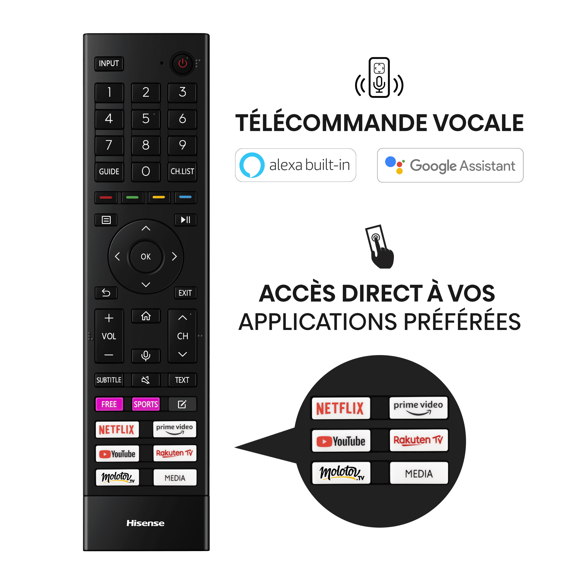 Contrôlez votre TV avec votre voix grâce à sa télécommande vocale. Un simple appui sur le bouton micro de la télécommande suffit et la TV réagira rapidement à vos commandes..