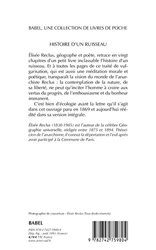 Elisée Reclus, géographe et poète, retrace en vingt chapitres d'un petit livre inclassable l'histoire d'un ruisseau. Et à toutes les pages de ce traité de vulgarisation qui est aussi une méditation morale et poétique, transparaît la vision du monde de l'anarchiste Reclus : la contemplation de la nature, de sa liberté, ne peut qu'inciter l'homme à croire aux vertus du progrès, de l'enthousiasme et du bonheur immanent.