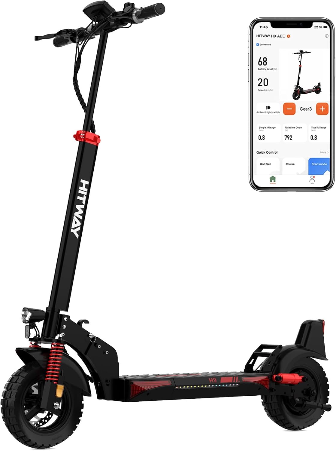 HITWAY Trottinette Électrique pour Adultes - Pneus 10” Sans Chambre à Air, Double Suspension, Moteur 800W, Batterie 15,6Ah à 27Ah, 3 Modes de Vitesse, Autonomie de 70 à 110 km, Vitesse de 25 km/h, Connexion APP.