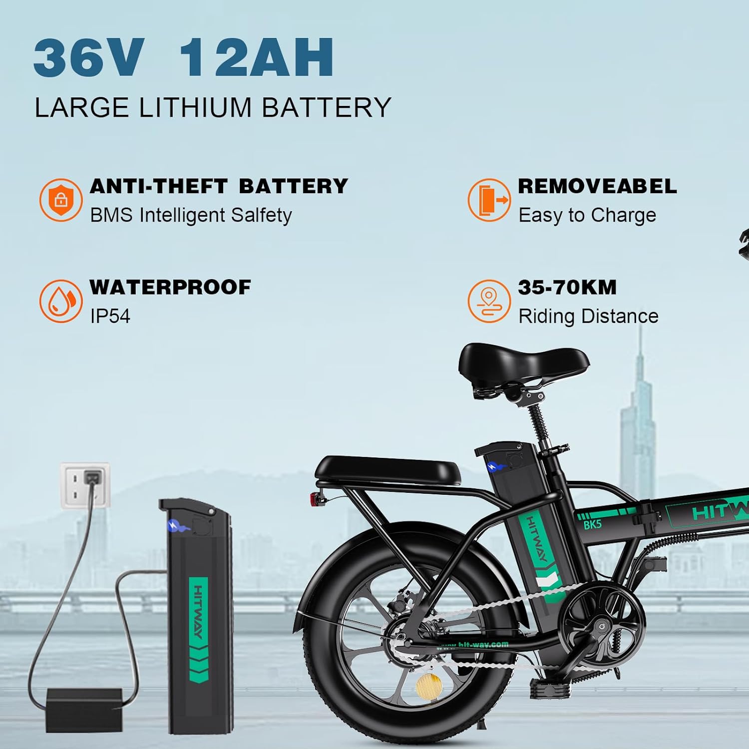 HITWAY vélo électrique Pliable 16" Ville E-Bike Adulte, Moteur 250W, Batterie 36V12Ah, 25km/h, Pédalage Assisté,Autonomie 35-70km, Femme Homme