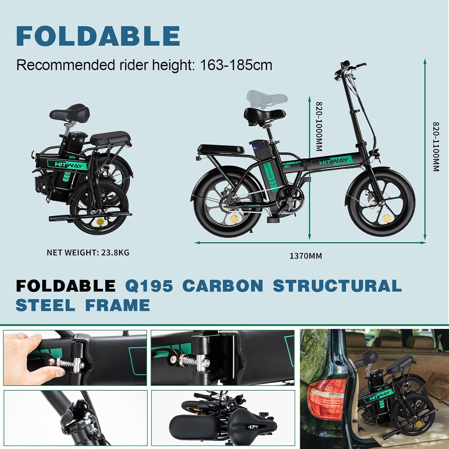 | Libellé | HITWAY vélo électrique Pliable 16" Ville E-Bike Adulte,Pédalage Assisté,Autonomie 35-70km, Femme Homme Noir |
