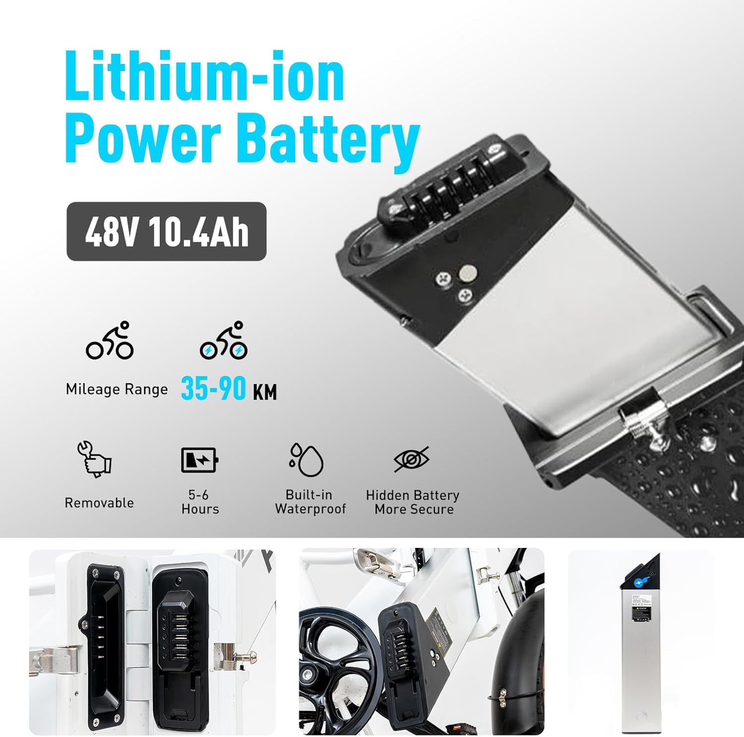 ✔️Batterie : batterie au lithium 48 V 10,4 AH