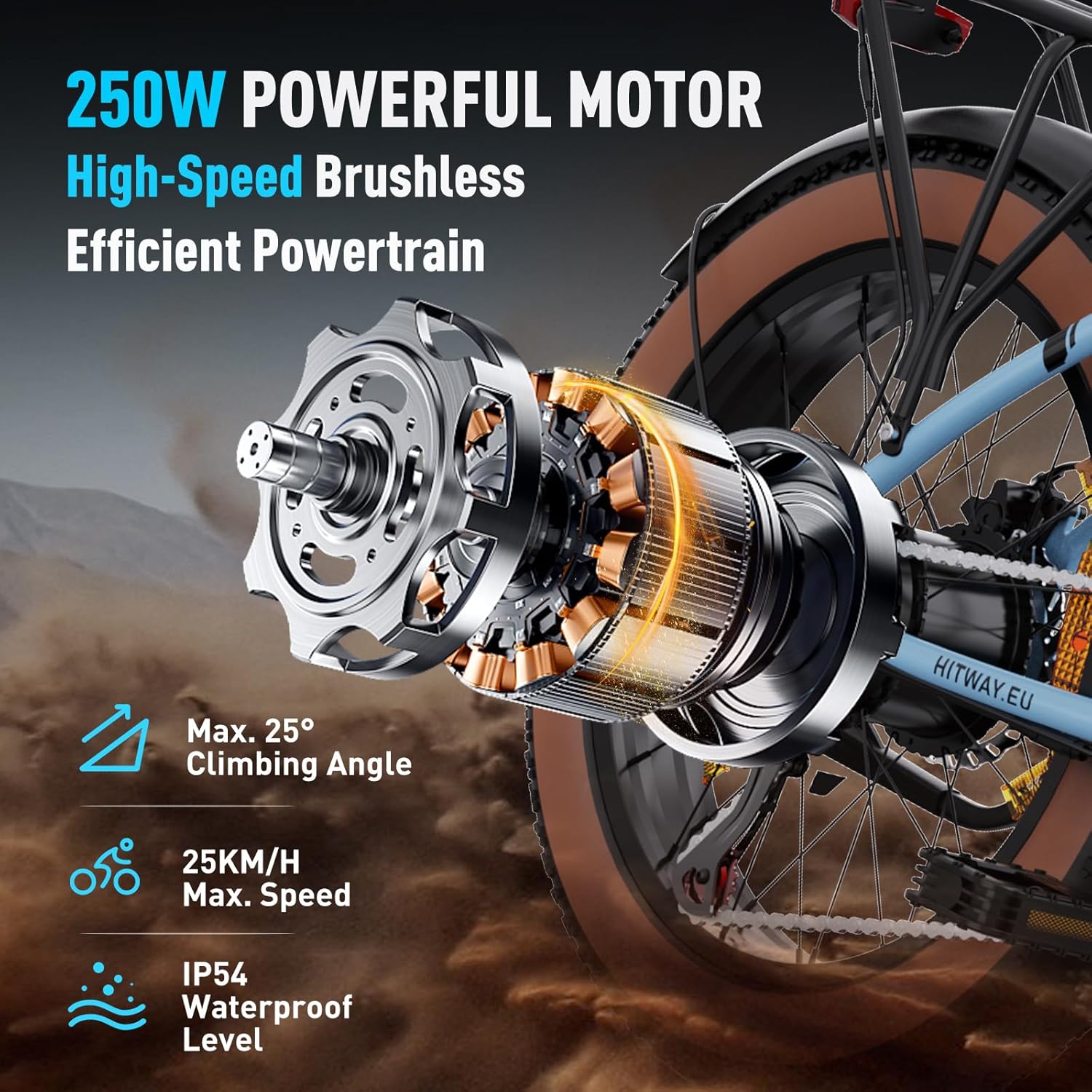 Libellé HITWAY Vélo Électrique Pliable 20 * 4,0 Pouces - BK20 Bleu