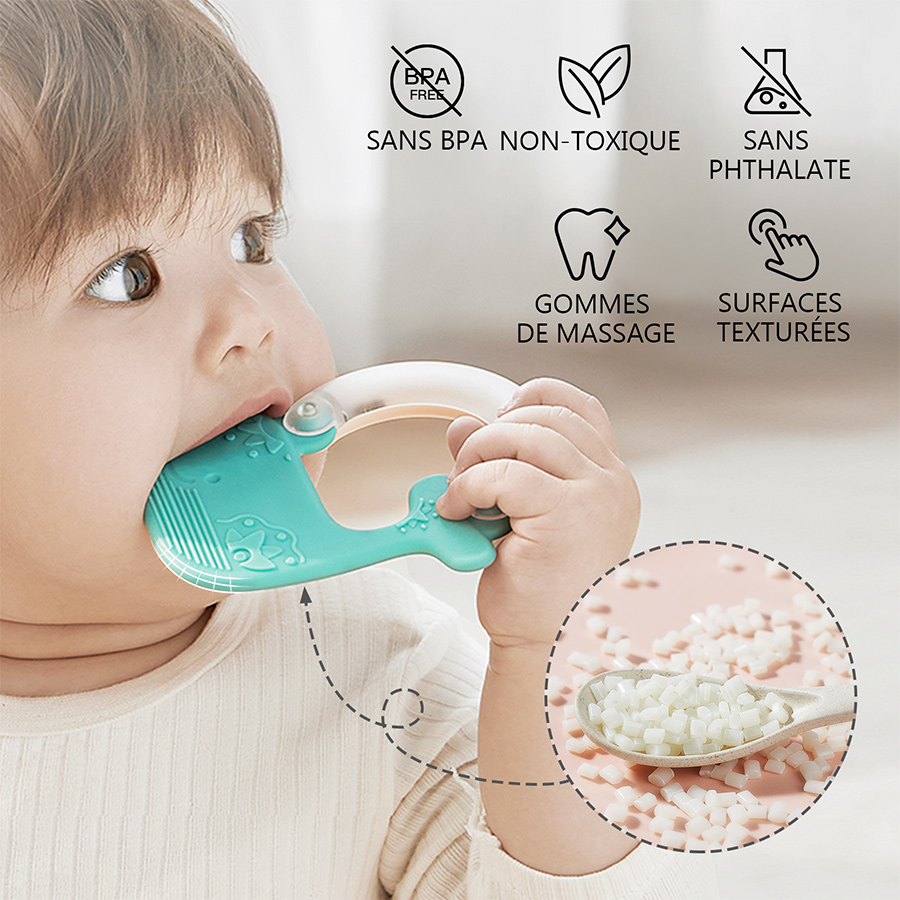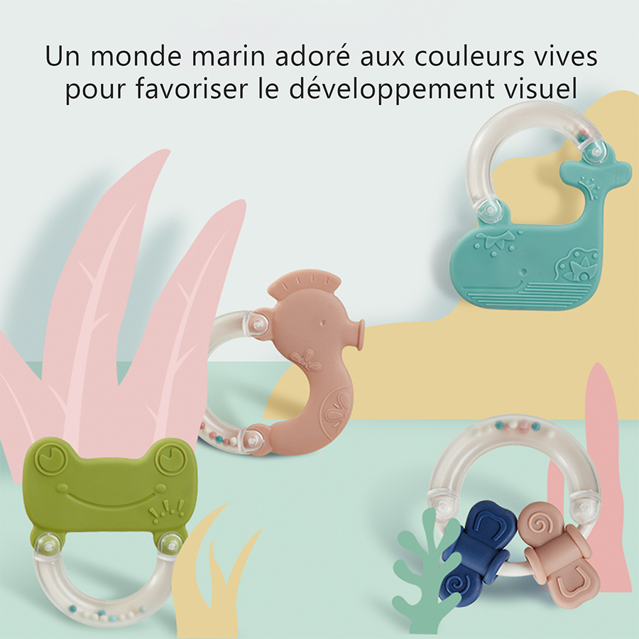 Hochet et Jouet dentition en silicone pour bébé de 0-6 mois - 10pcs