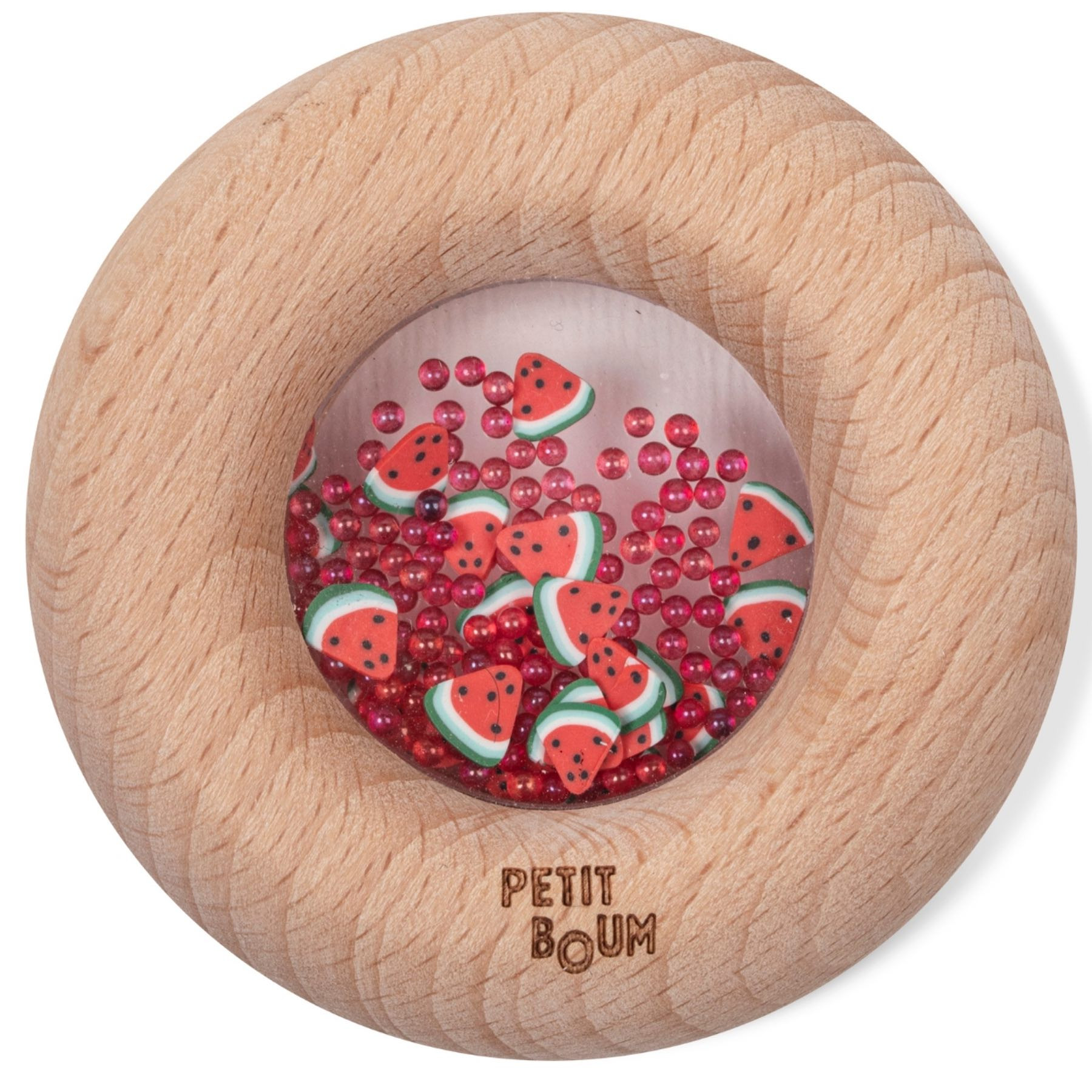 À l'intérieur de ce hochet ergonomique, des fruits et légumes colorés se déplacent et émettent une douce signature sonore lorsqu'on le secoue. Cette combinaison stimule la curiosité naturelle de votre enfant tout en développant sa motricité fine et sa coordination œil-main. Idéal pour les petites mains, ce hochet est facile à saisir et à manipuler, rendant chaque moment de jeu à la fois amusant et éducatif.Fabriqué à partir de bois de hêtre naturel, ce jouet garantit une sécurité optimale pour les tout-petits. Sans BPA, non toxique et résistant aux petites morsures, il accompagne votre enfant en toute tranquillité. En plus d'être sûr, son design intemporel et sa texture douce en font un objet agréable à manipuler et à découvrir.Le hochet donut Petit Boum est un véritable outil de découverte sensorielle. Il offre une expérience multi-sensorielle, encourageant l'observation, l'écoute et le toucher. Utilisé comme jouet d'éveil, il peut également servir à détendre et apaiser votre bébé grâce à ses mouvements et sons doux.Chaque hochet est fabriqué avec soin, respectant les normes de sécurité européennes les plus strictes. Petit Boum s'engage à créer des produits éco-responsables et durables, qui accompagnent les premières découvertes des tout-petits tout en respectant la planète.À propos de Petit BoumPetit Boum est une marque renommée pour ses jouets sensoriels inspirants et innovants, conçus pour stimuler l'imagination et la curiosité des enfants. Fondée par des parents passionnés, elle s'appuie sur des matériaux naturels et durables pour créer des jouets sûrs, éducatifs et esthétiques. Chaque produit est fabriqué en Espagne avec une attention méticuleuse aux détails, garantissant une expérience ludique et enrichissante.