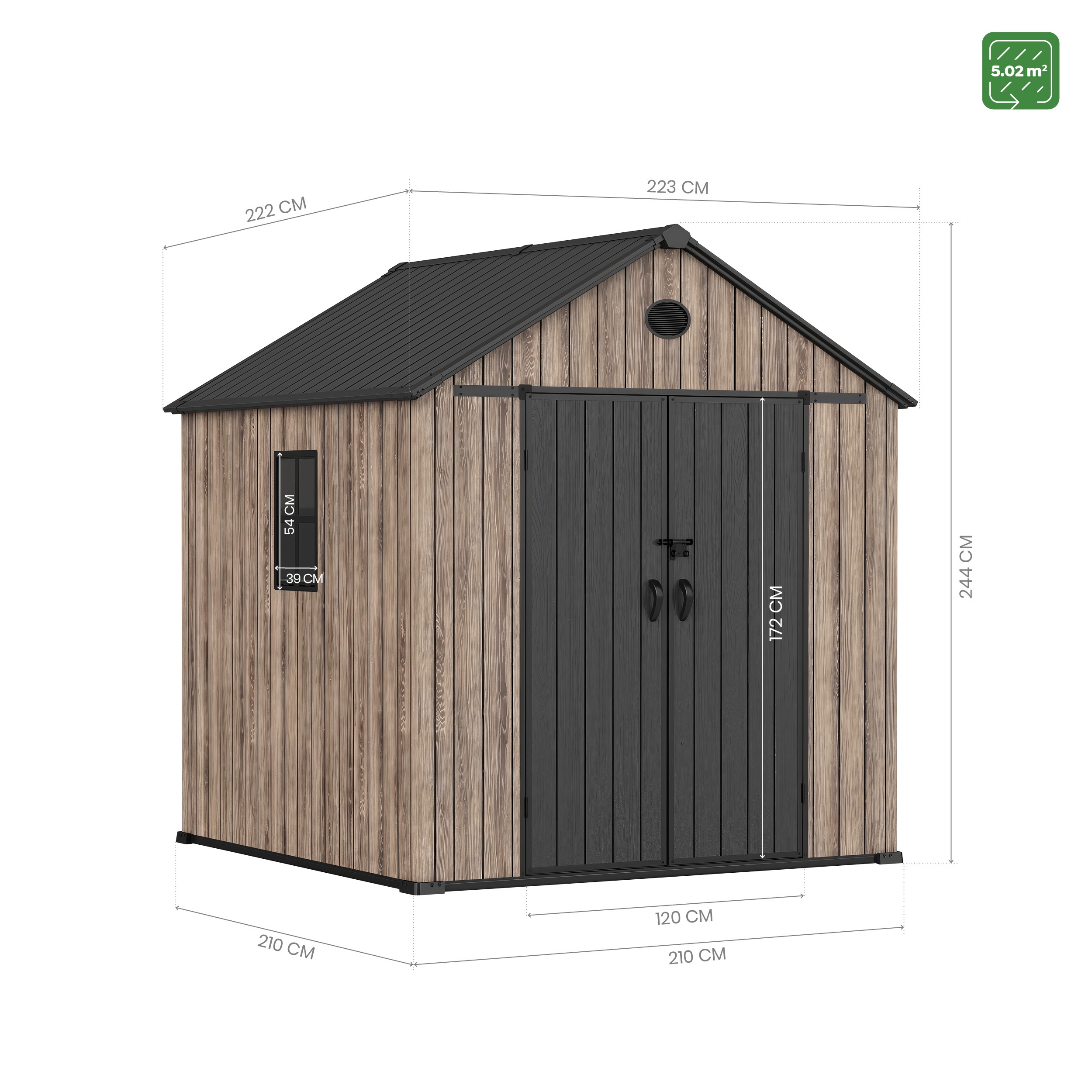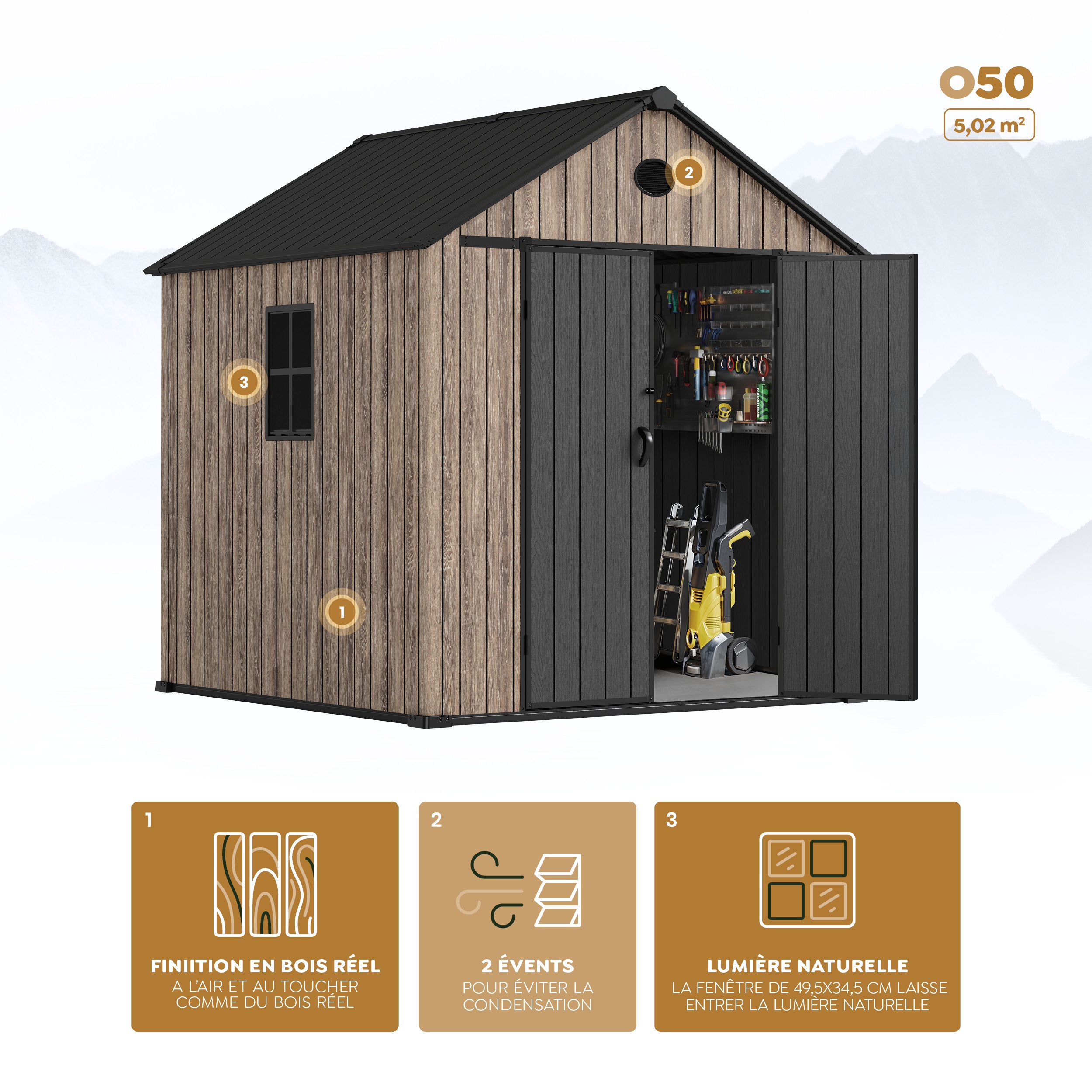 Hoggar – Abri de jardin en résine 5,02 m² Oak O50 – Sol inclus – Fenêtre latérale – Effet bois premium –