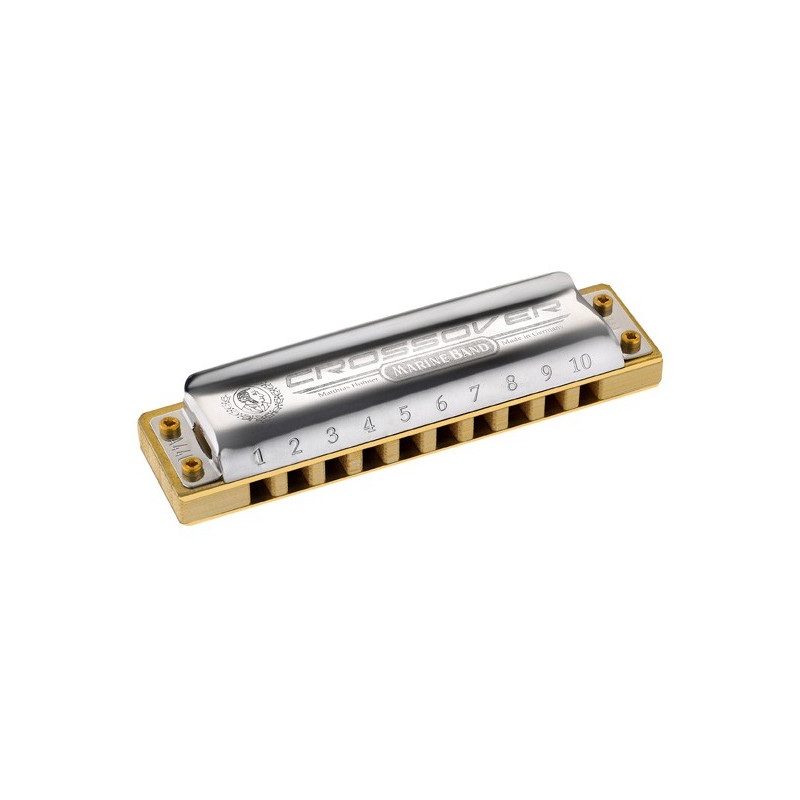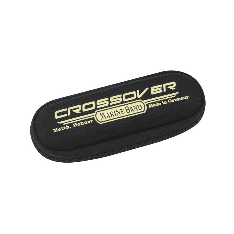 Le Crossover est une déclinaison moderne du Marine Band 1896 dont la qualité de la fabrication a été pensée pour le musicien professionnel polyvalent souhaitant jouer tout à la fois du blues, du rock, du jazz, de la soul et du funck. Le sommier en bois de bambou laminé (brevet déposé) est parfaitement stable pour recevoir les plaques, qui sont vissées et non plus clouées. L'instrument est de ce fait remaquablement étanche et délivre un son tranchant et puissant, particulièrement adapté à tous les styles de musique acoustique mais également au jeu amplifié. L'accordage juste permet le jeu mélodique note par note dans les différentes positions tout en offrant des accords pleins et ronds. Une addition parfaite à la famille des Marine Band. Caractéristiques Nouveau design optimisé des capots pour un meilleur volume de jeu. Evite le cognement des anches dans l'octave basse Sommier en bois de bambou à laquage triple (breveté), un matériau innovant et respectueux de l'environnement Plaques et capots vissés avec, respectivement, trois et quatre vis Philips pour accroître l'étanchéité et faciliter l'entretien Anche à nouveau profil pour plus de longévité et moins de "casse" Ouverture des canaux et coins des plaques arrondis pour un meilleur confort de jeu et une attaque plus franche Etui en neoprène rigide doté d'une fermeture-éclair et d'une boucle en élastomère pour le port de l'instrument à la ceinture Toutes les parties de cet harmonica sont disponibles en pièces de rechange Pièces entièrement compatibles et interchangeables avec le Marine Band Deluxe et le Thunderbird Fabrication allemande Type diatonique Réglage Richter Nombre de trous : 10 Lames : 20 Laiton Capot en Acier inoxydable (inox) Jeu de plaques : 0,9 mm / millimètre Laiton Matériau plaque de musique : Laiton Revêtement de l'embouchure : Laque "SuperGlide" Corps (Peigne) : Bambou, Blond Matériau du corps (peigne) : Laque claire l ongueur : 10 cm