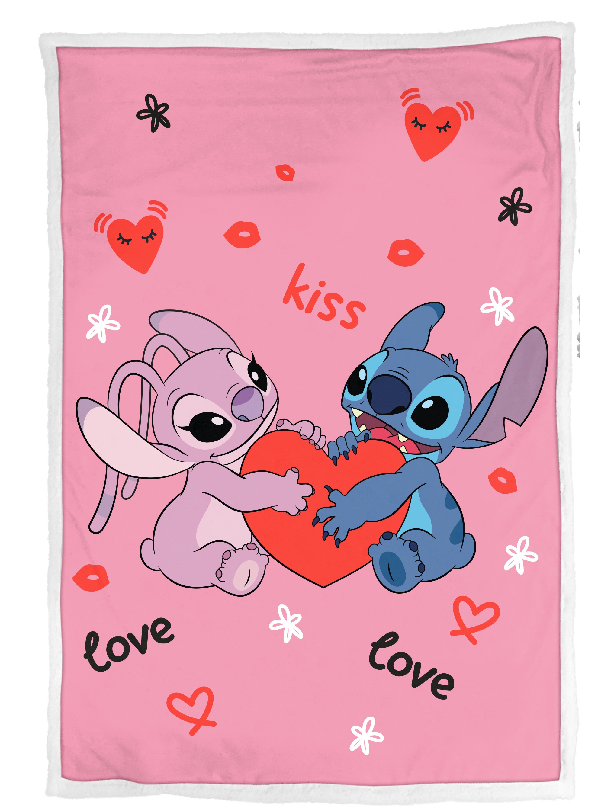 Homadict Plaid Sherpa 100X150 Cm Stitch Love Kiss Pink