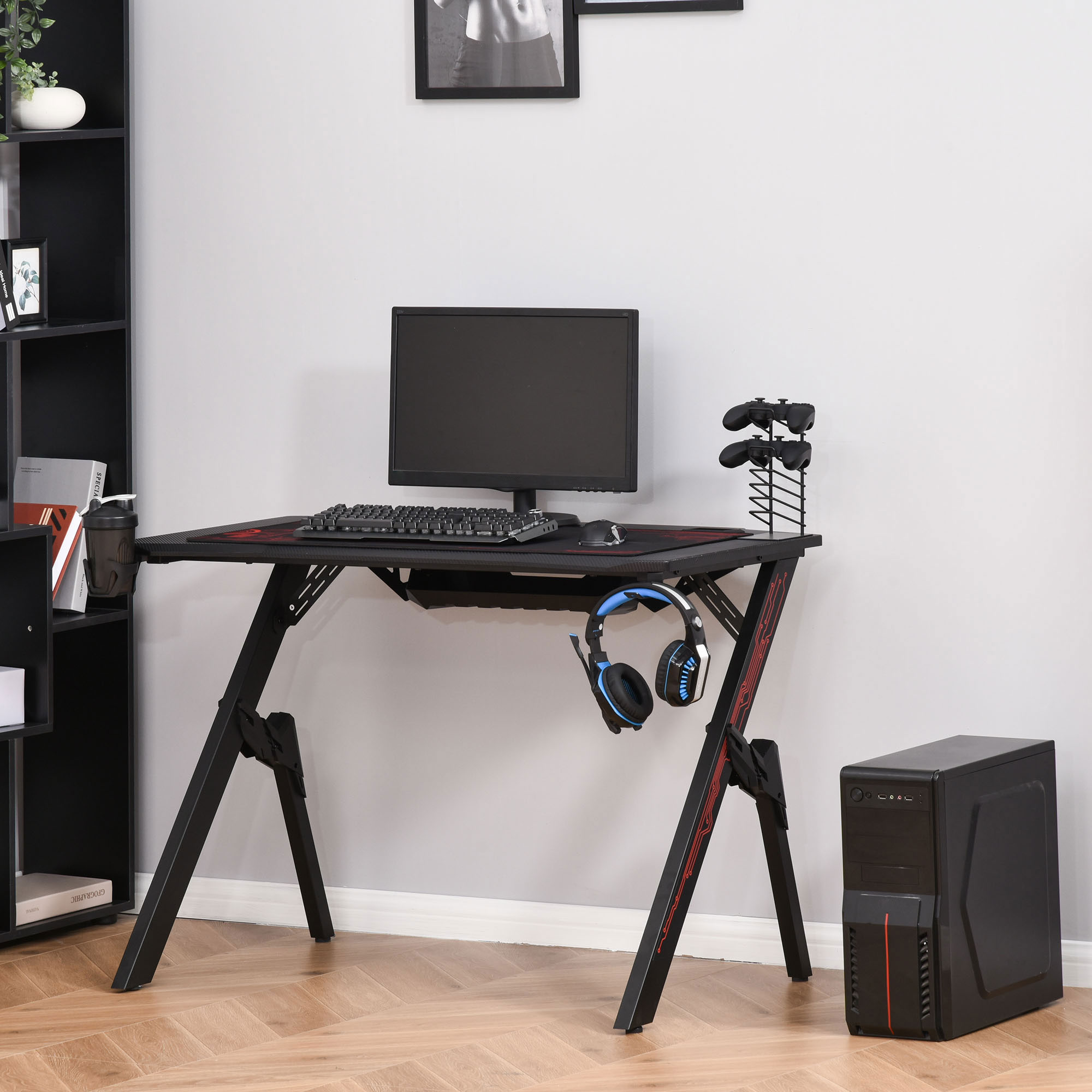 HOMCOM Bureau gaming bureau gamer bureau informatique bracket support casque porte-gobelet et tapis souri