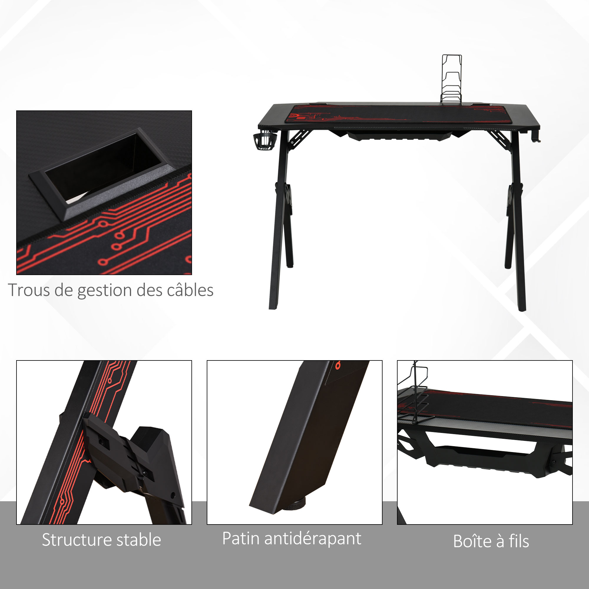 Libellé HOMCOM Bureau gaming bureau gamer bureau informatique bracket support casque porte-gobelet et tapis souris fournis métal MDF noir rouge
