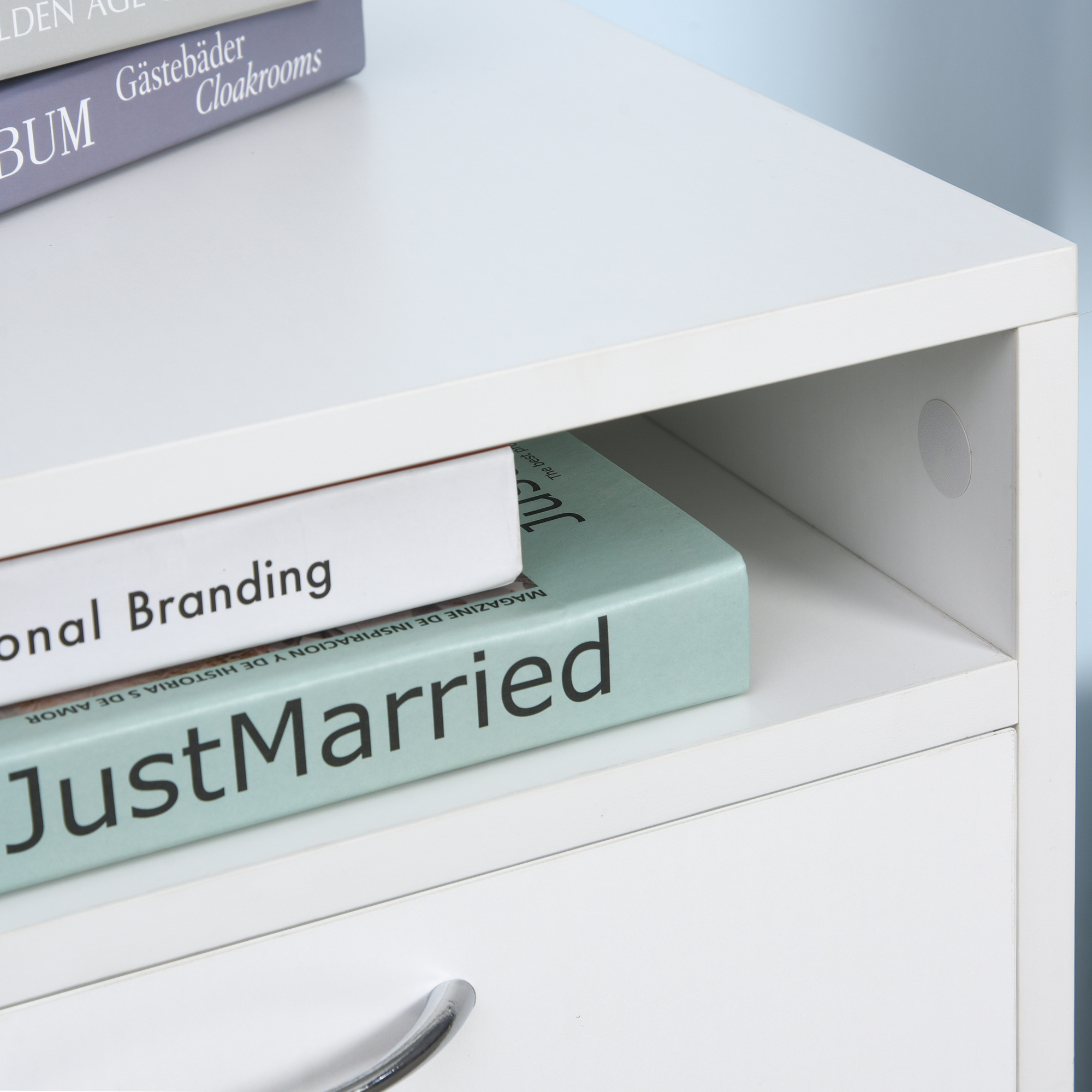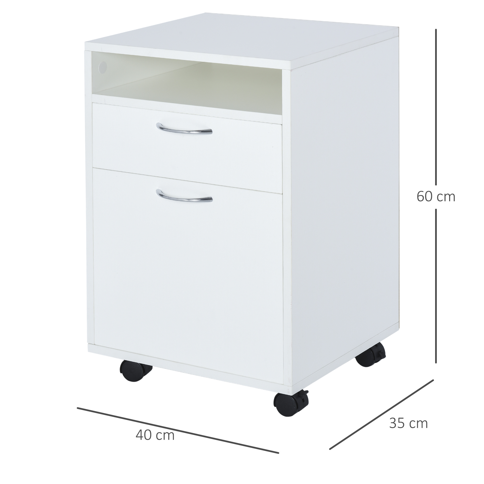 | Libellé | HOMCOM Caisson de bureau rangement bureau sur roulettes tiroir placard niche panneaux particules blanc |
