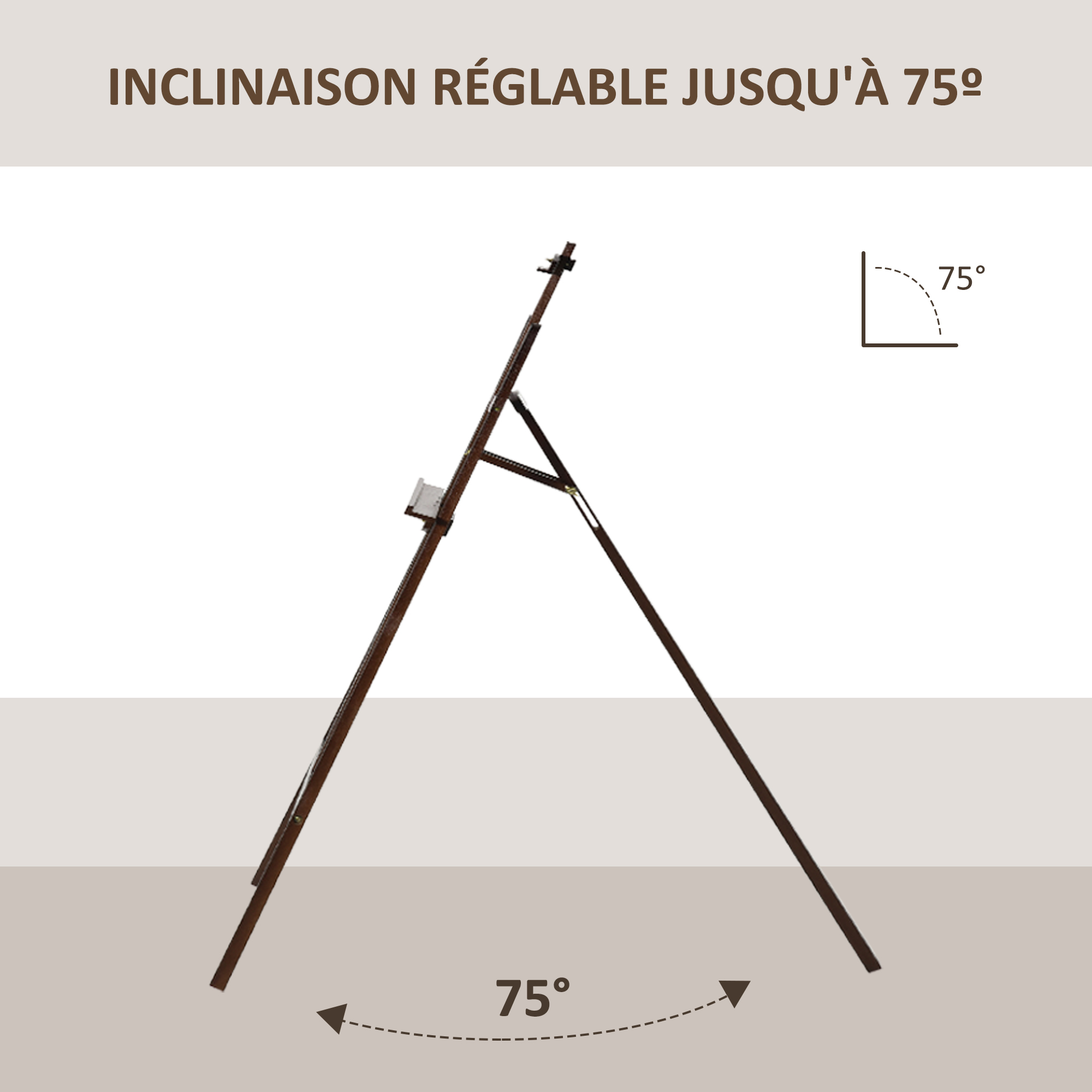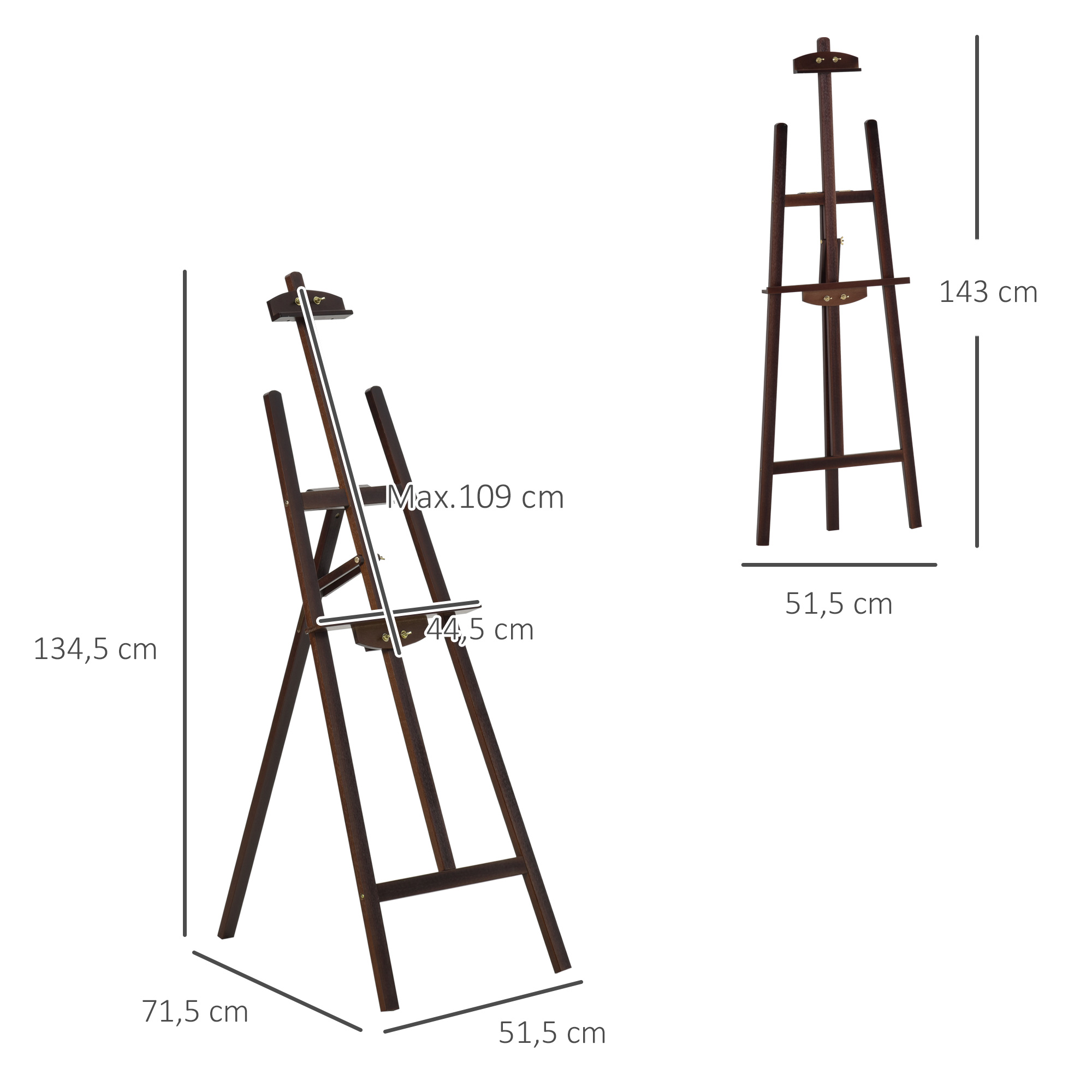 Libellé HOMCOM Chevalet d'artiste sur pieds pliable dim. 51,5L x 71,5l x 134,5H cm inclinaison réglable 90° max. bois de pin coloris noyer foncé