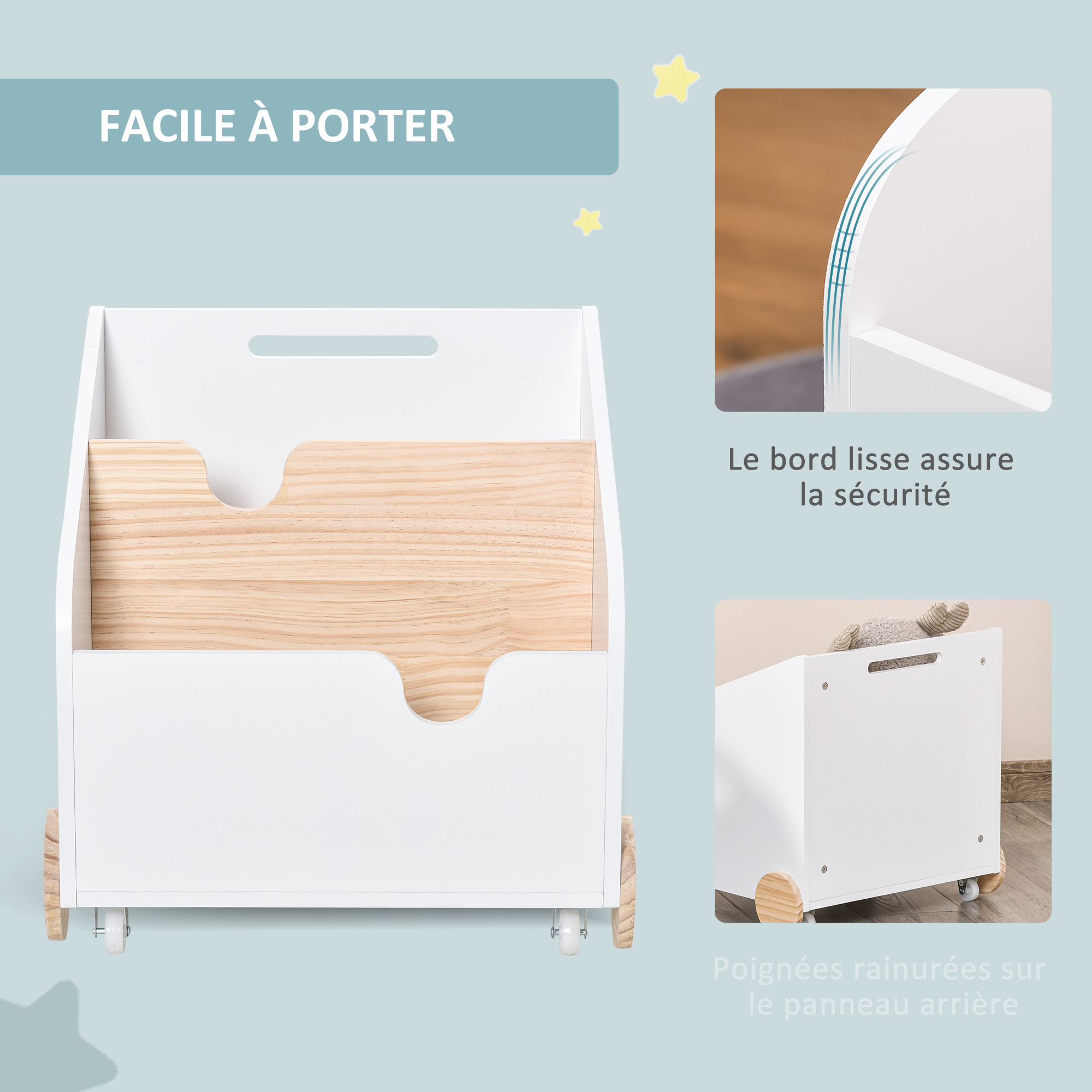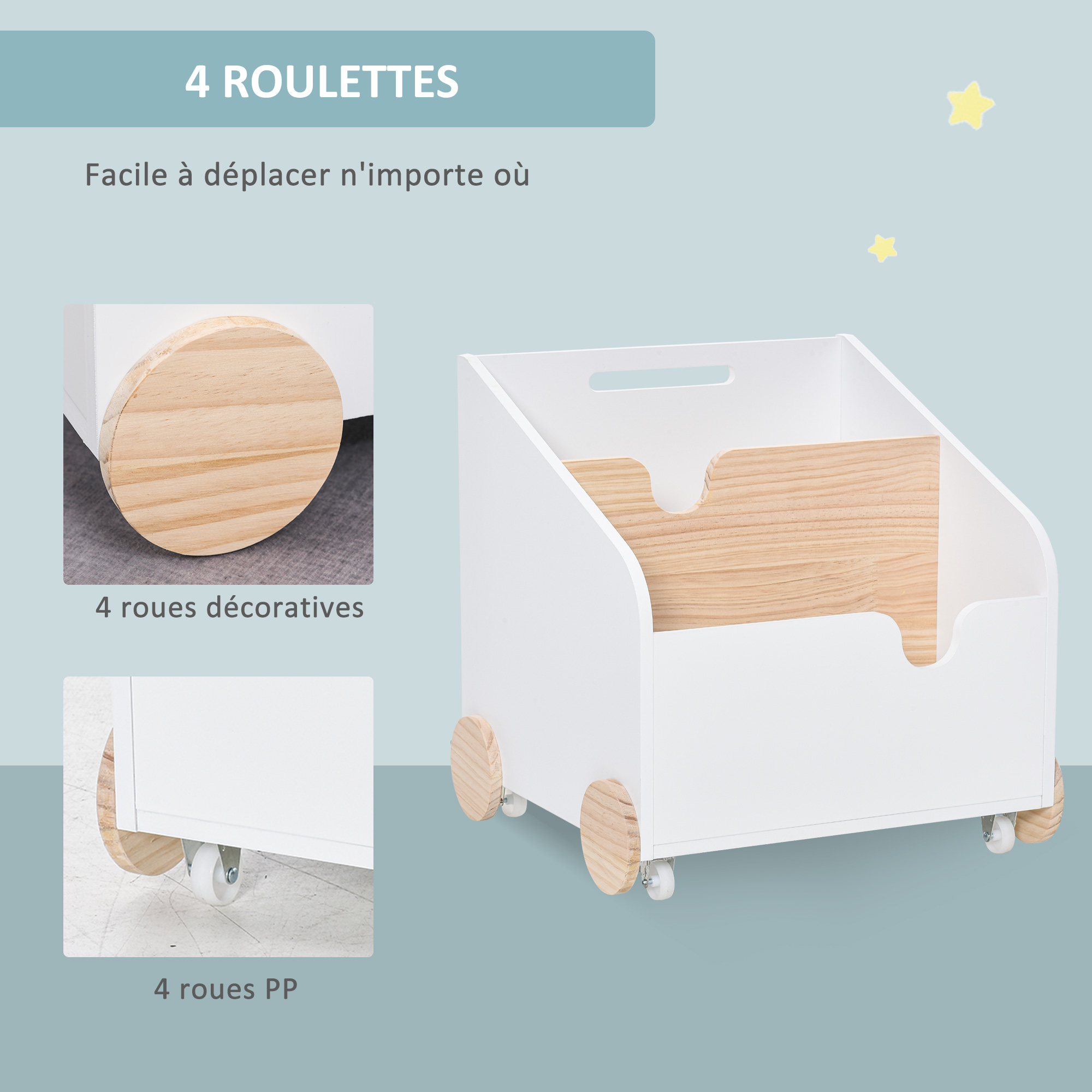 | Libellé | HOMCOM Coffre à jouet roulant - bac à jouet - chariot à jouet - 4 roulettes, 2 compartiments, poignée - dim. 40L x 43l x 43H cm - MDF blanc pin |